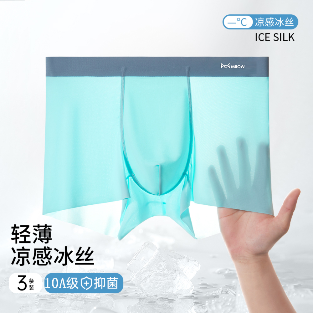 冰丝透气四角短裤 3件 莫代尔大码 平角内裤 男生 蕉内银皮500E男士