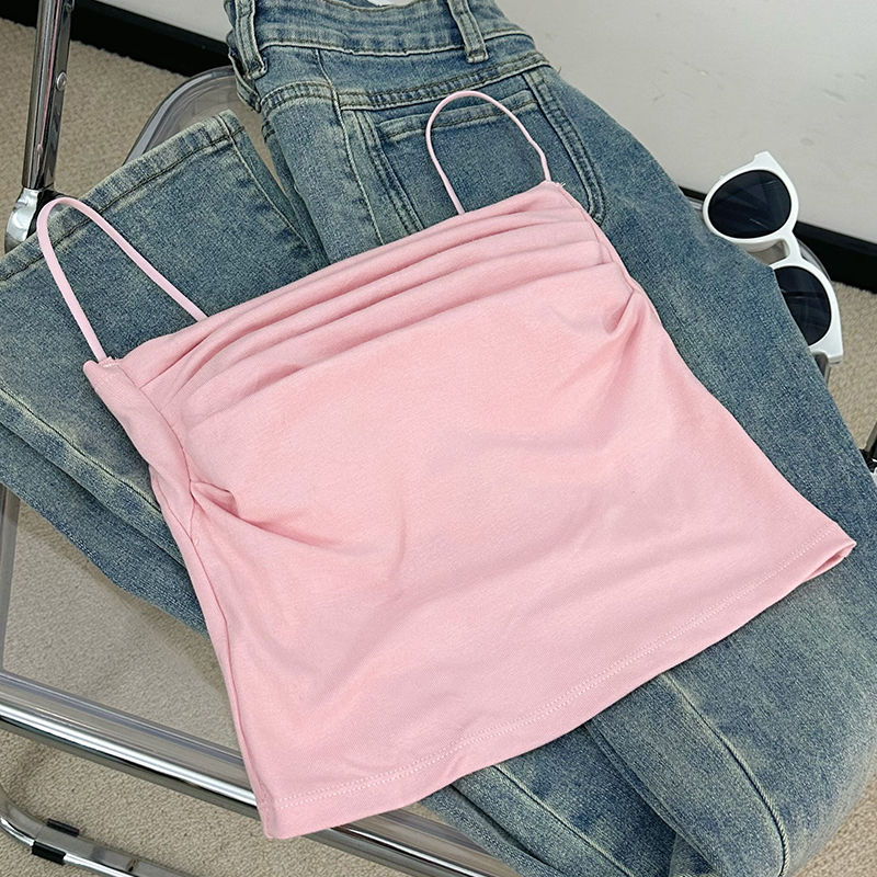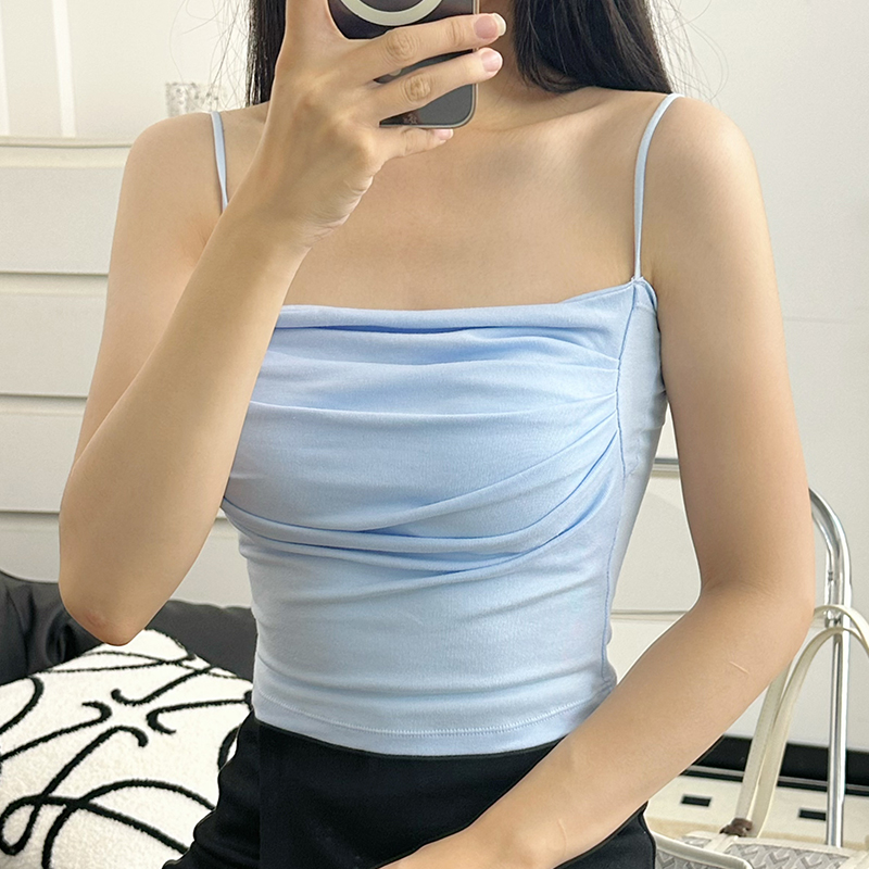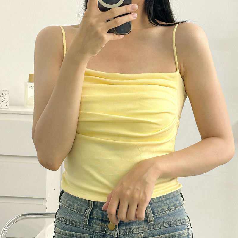 美泊姿2024奶黄色皱纹带胸垫背心女新款 秋冬吊带背心女打底内塔女