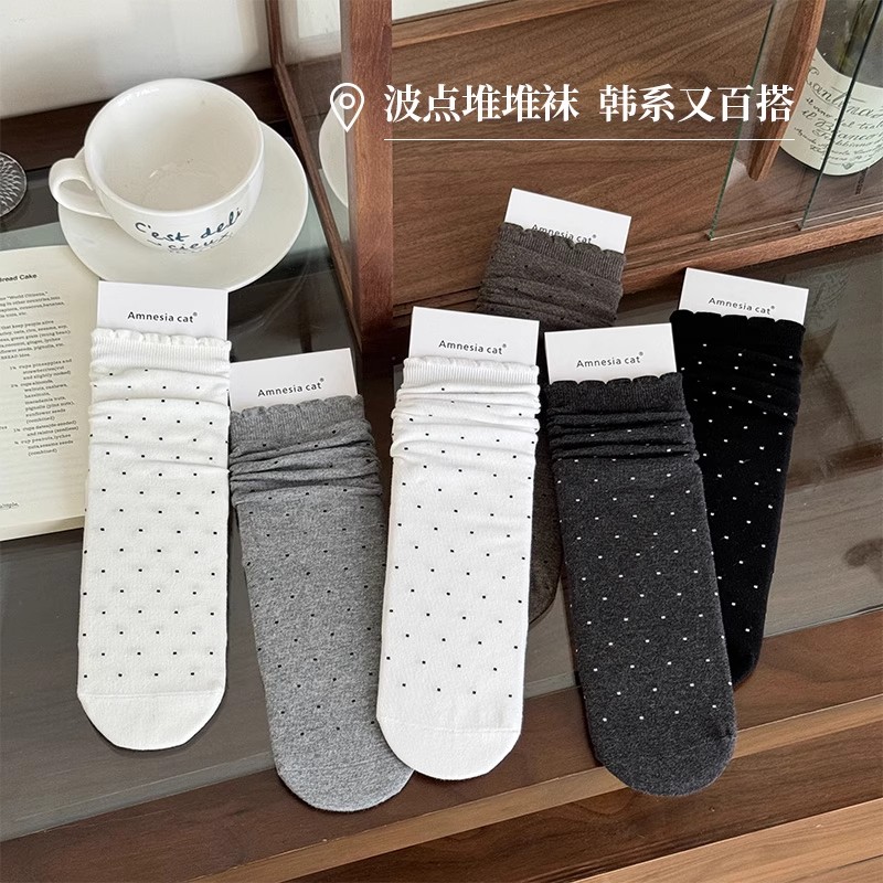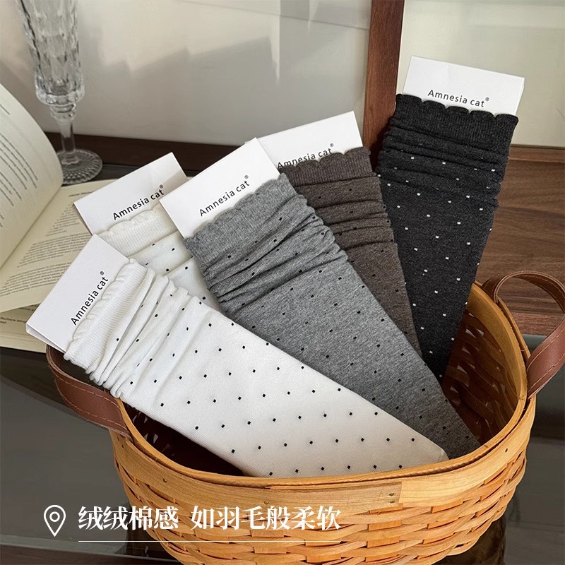 纯棉中筒棕咖色堆堆袜配勃肯鞋 2025新款 长袜 秋冬季 木耳边袜子女款