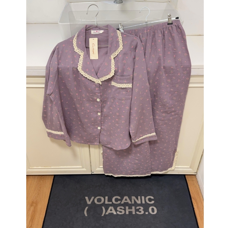 开衫 婴儿棉纱睡衣女春秋季 网红个性 长裤 纯棉双层100%棉家居服 长袖