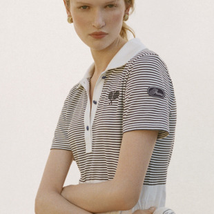 FRAME网球系列女士复古翻领条纹短袖 新款 POLO上衣 2025秋季