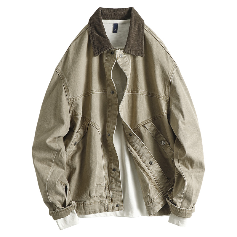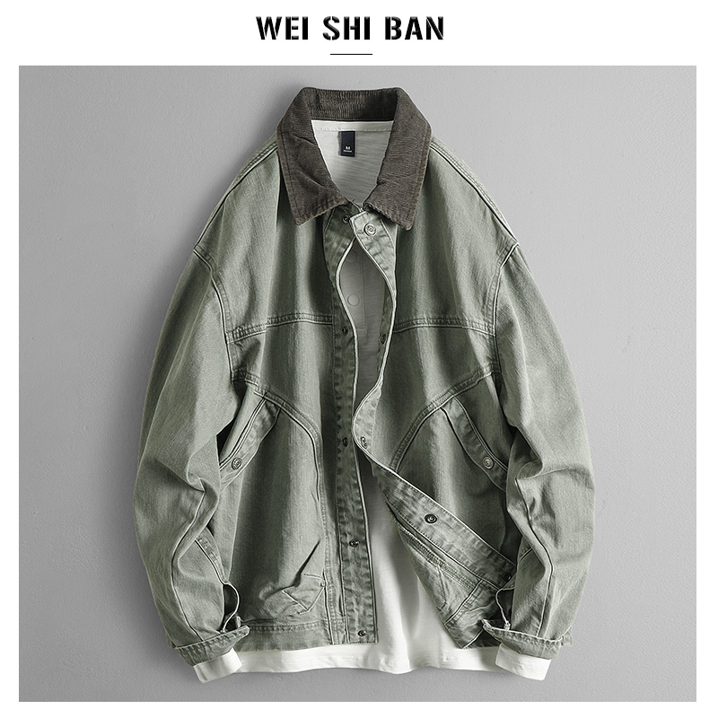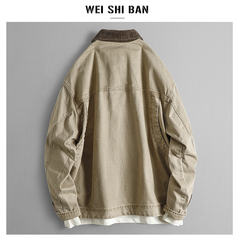 江南先生NewJNXS美式 复古透气立领撞色拼接夹克春秋男女宽松外套
