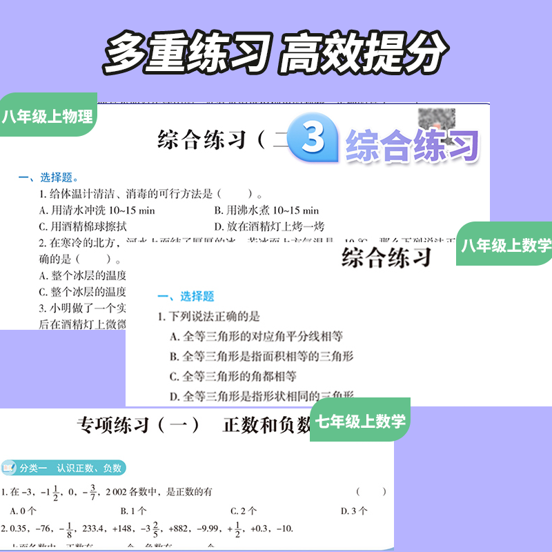 2025新版 七年级八年级上册数学物理同步训练专项练习题一课一练高频考点强化训练课外辅导资料知识点巩固综合练习rh 荣恒