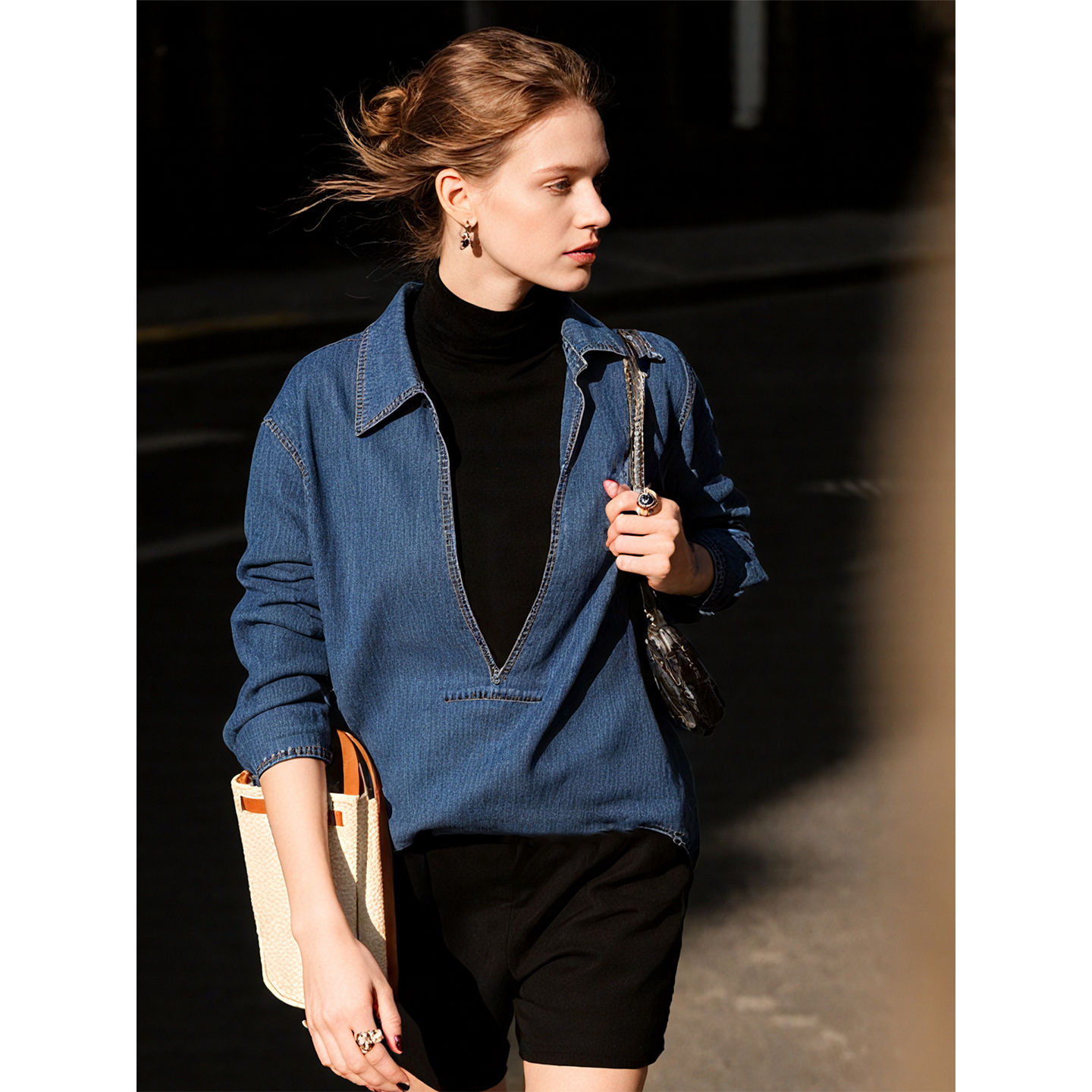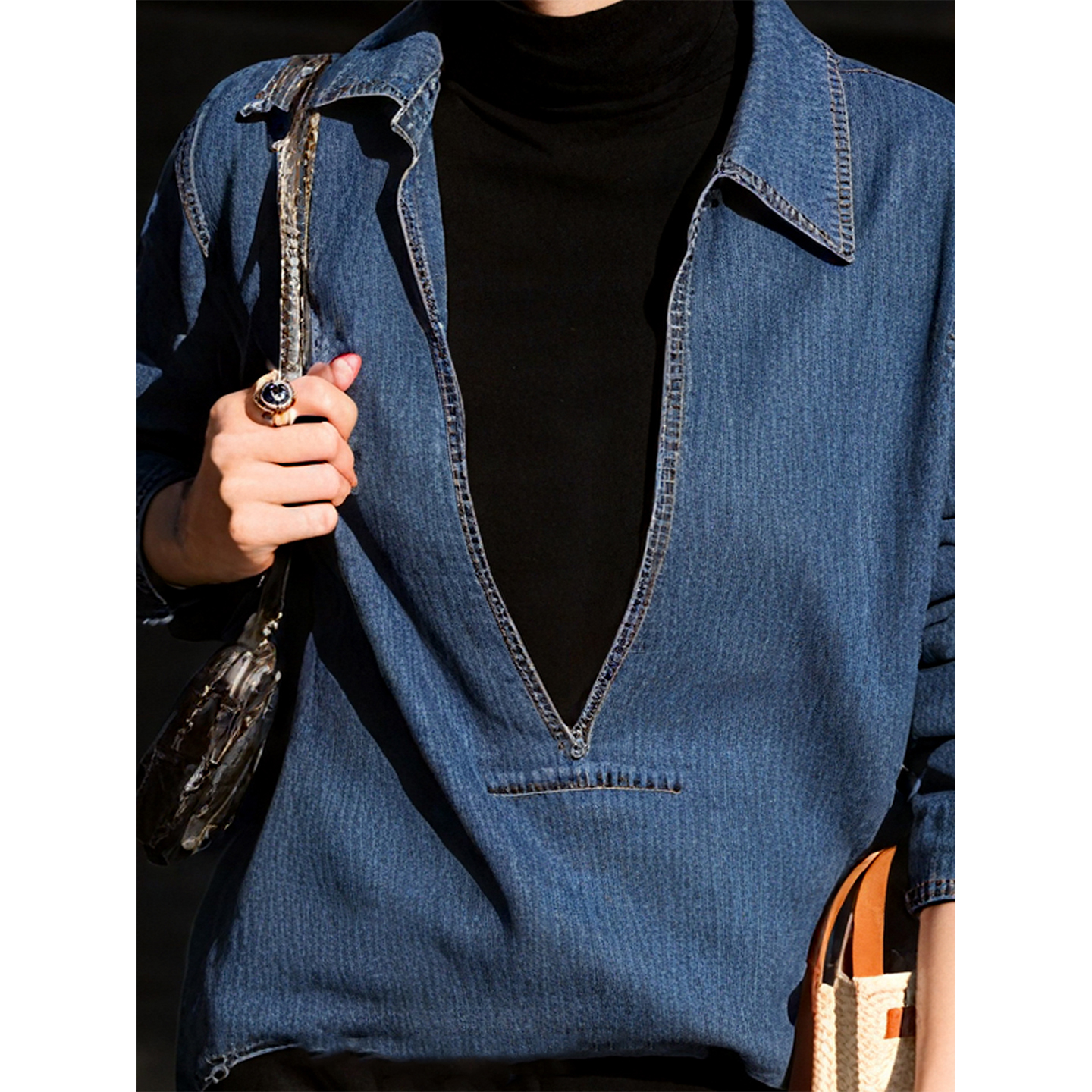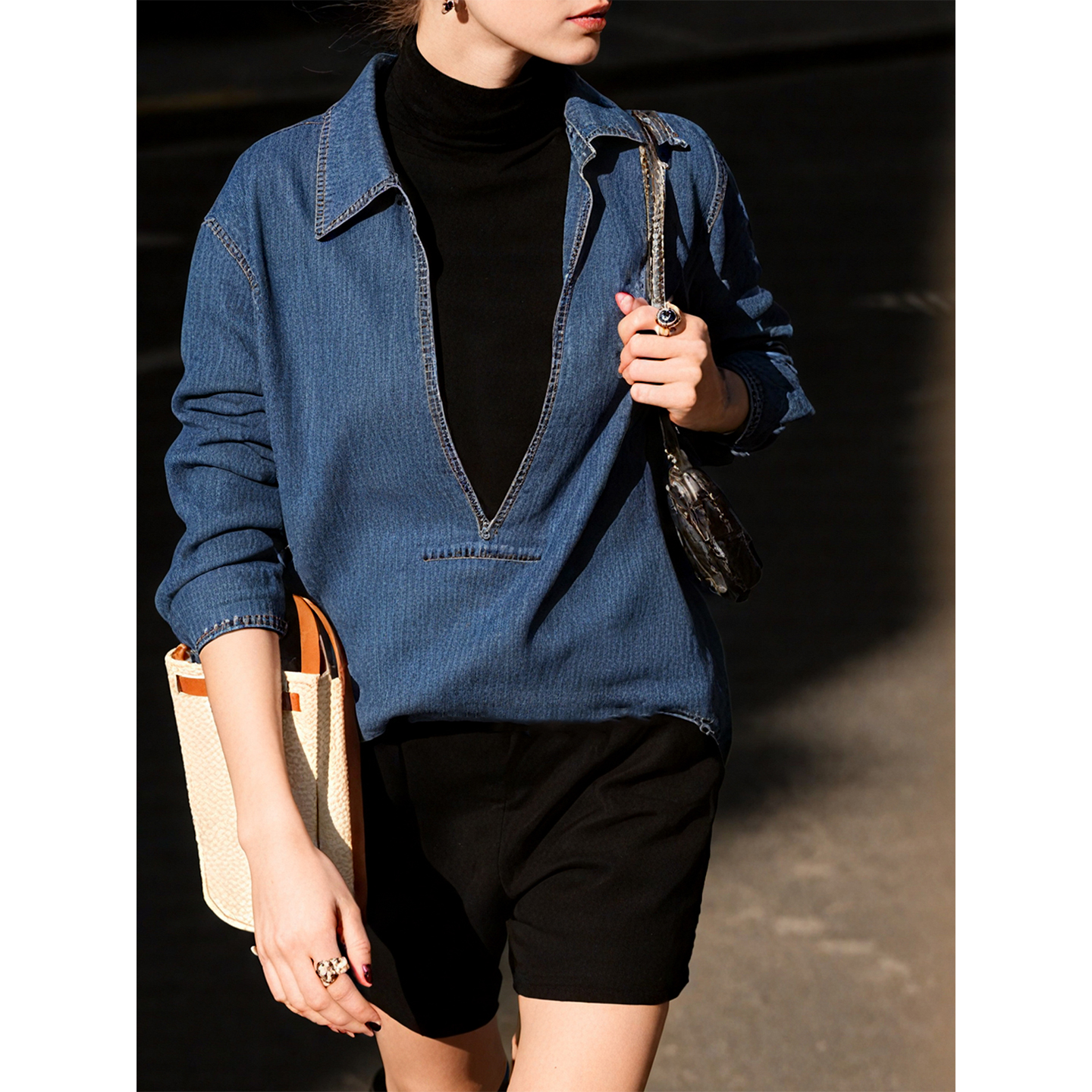 复古宽松情侣上衣 秋冬休闲美式 TeenieWeenie小熊男装 简约牛仔衬衫