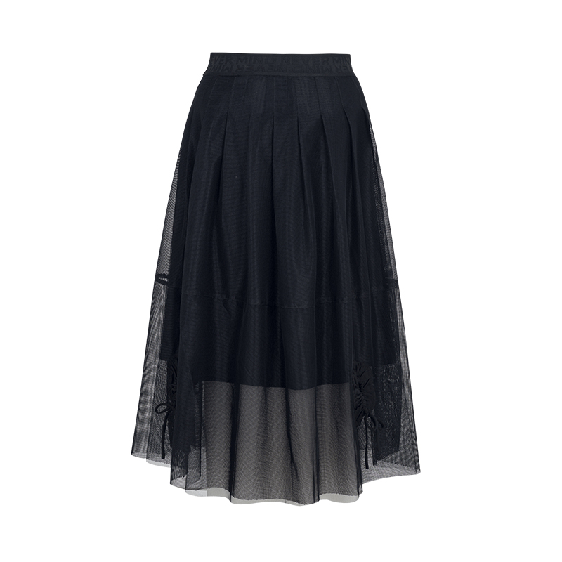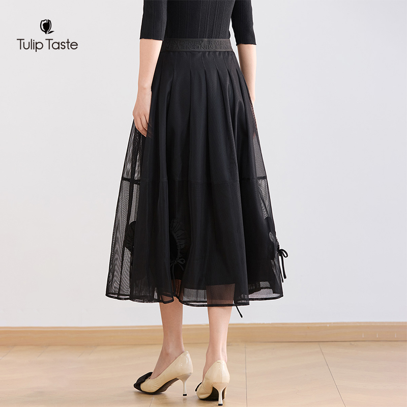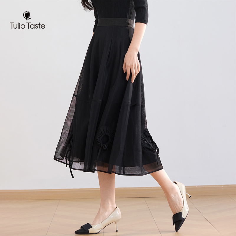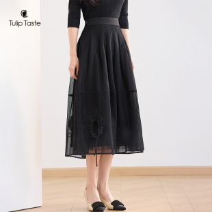 郁香菲网纱半身裙女气质通勤秋季 花苞型中长裙显瘦高腰A字裙 时尚