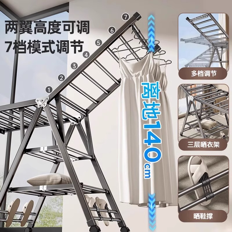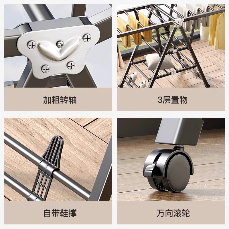 折叠晾衣架落地家用阳台凉晒挂衣架室内婴儿凉衣杆户外晒被子神器