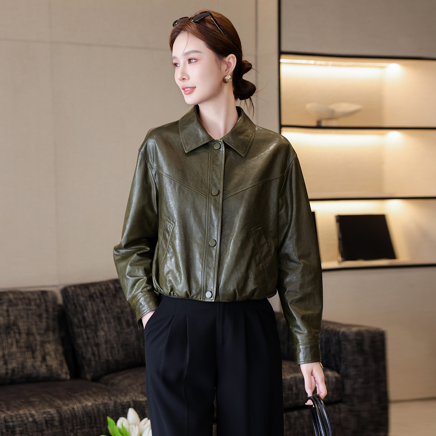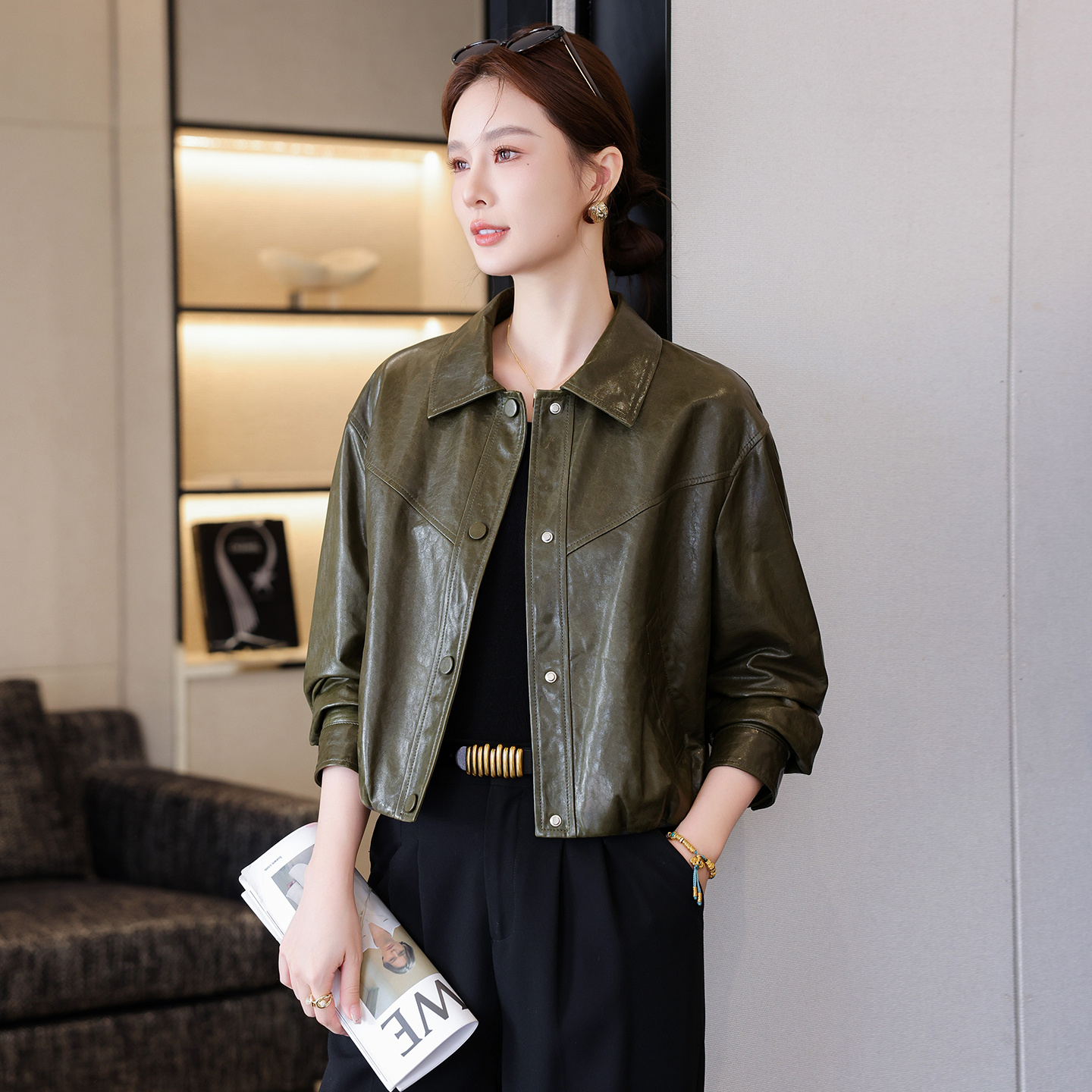 韩版 新款 皮衣外套女短款 装 显瘦立领机车水洗软皮夹克上衣 2025秋季