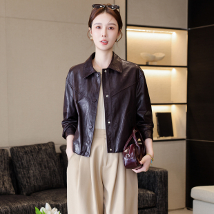 LYNEE 高级感复古蛋白PU皮夹克 高端大牌棕色皮衣外套女2025秋新款