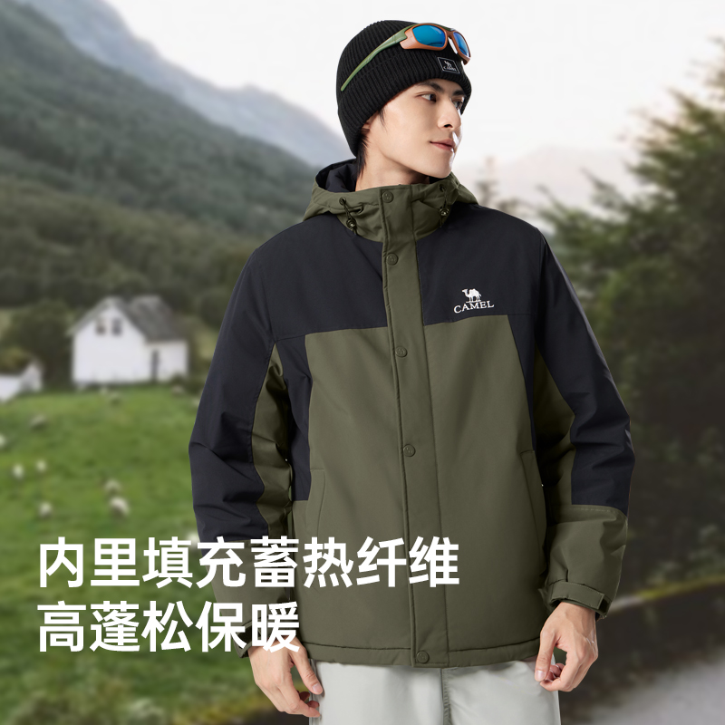冲锋衣男加绒加厚秋冬季 外套中老年人棉衣男 中年保暖棉服爸爸冬装