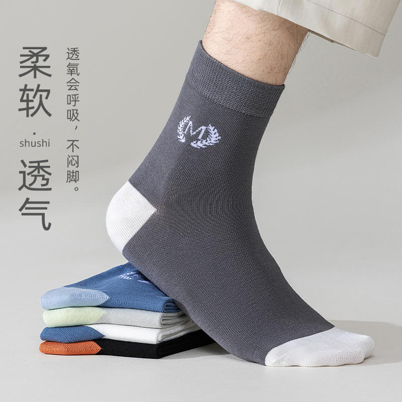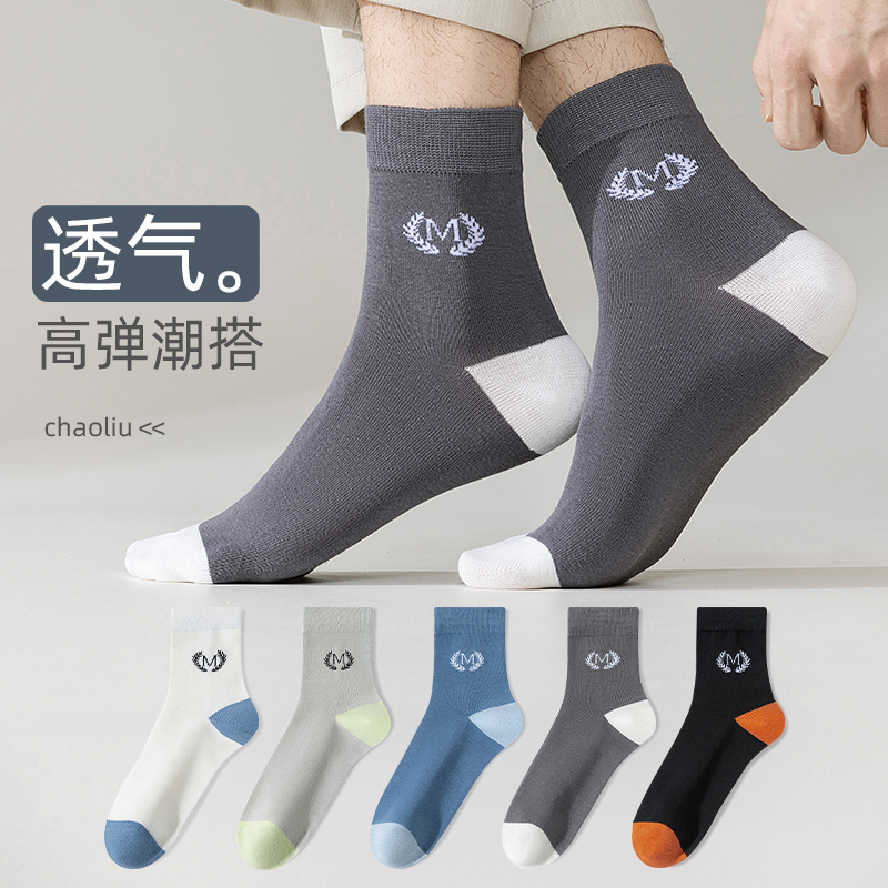 薄款 运动袜子防臭吸汗透气中筒袜春秋季 商务百搭潮袜子 男士 20双装