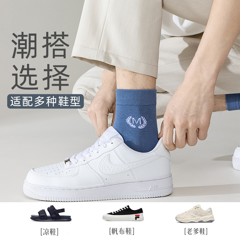 船袜 纯棉夏天短袜男士 雅鹿袜子男中筒防臭吸汗抗菌夏季 长袜薄款