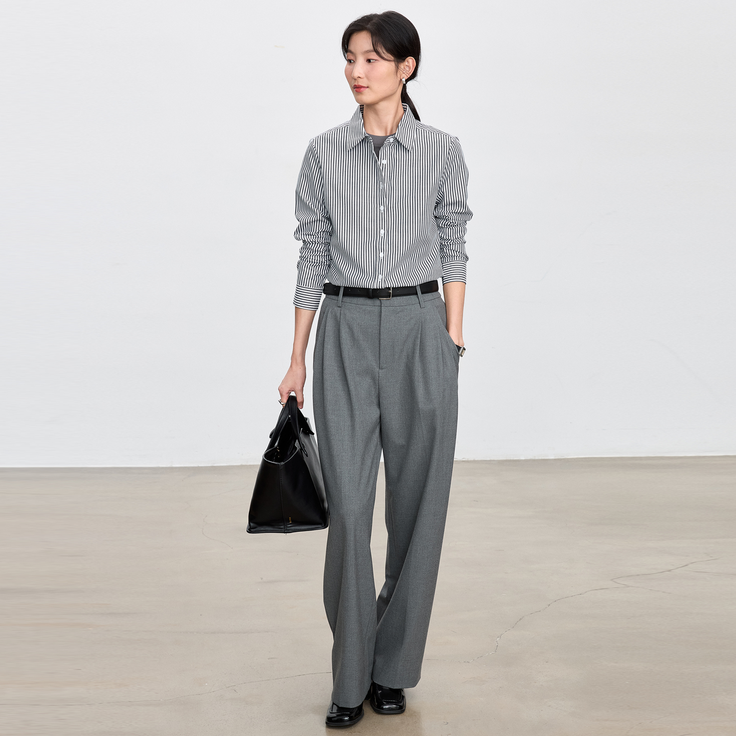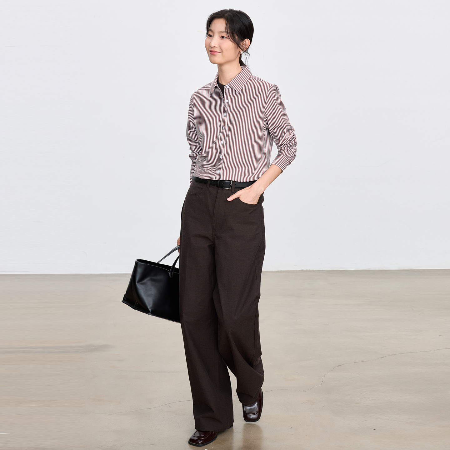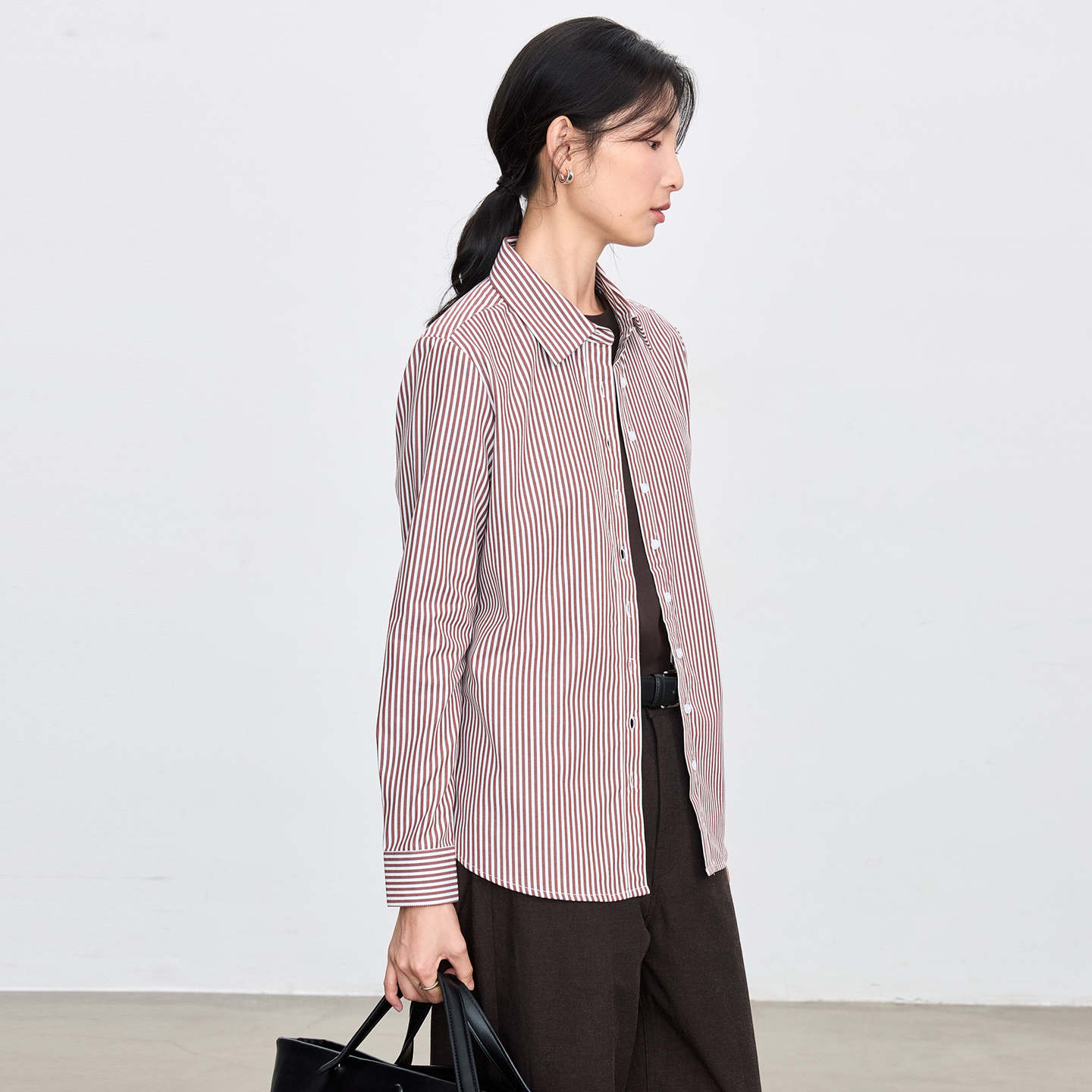 新款 磨毛2025秋季 时尚 通勤正装 衬衣全棉 宿·色条纹衬衫 长袖 女厚款