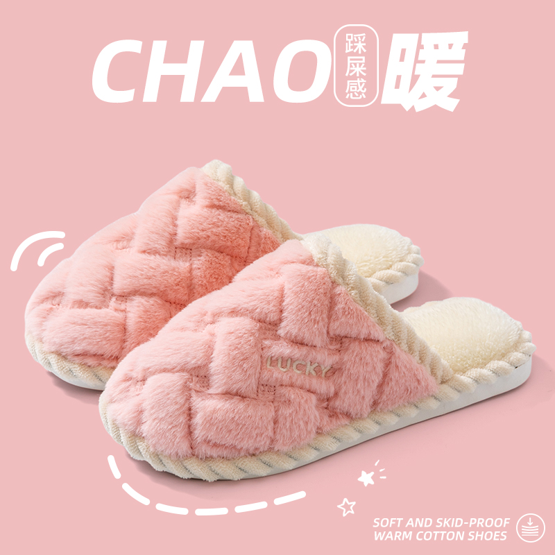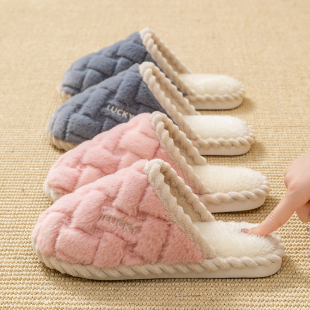 室内家居家用保暖毛毛绒月子厚底防滑男 2025新款 棉拖鞋 女士秋冬季
