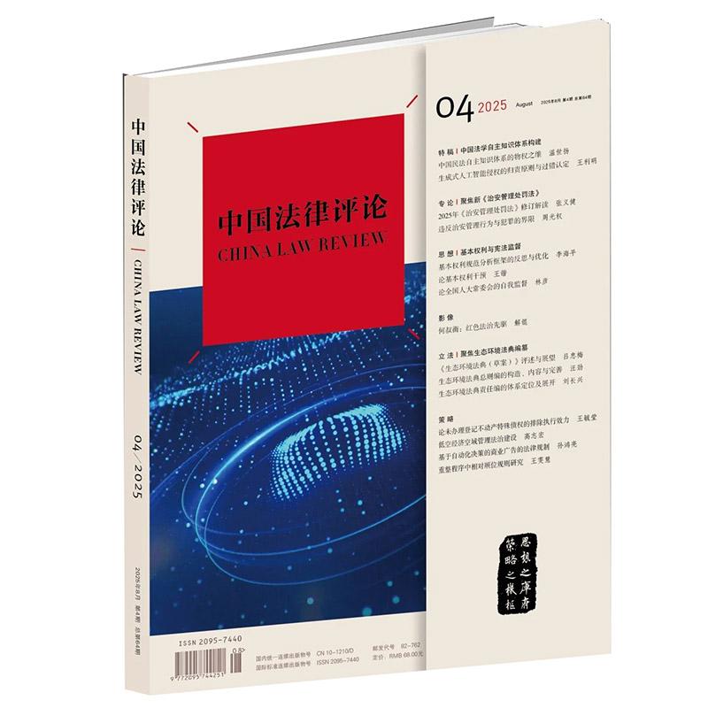 总第64期 法学期刊 中国法学自主知识体系 中国法律评论 法律 生态环境法典编撰 2025年8月第4期 治安管理处罚法解读 正版 双月刊