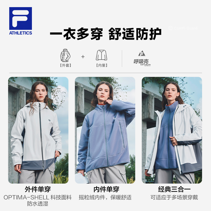 骆驼户外北风冲锋衣男抓绒三合一外套女防风防水旅游徒步登山服