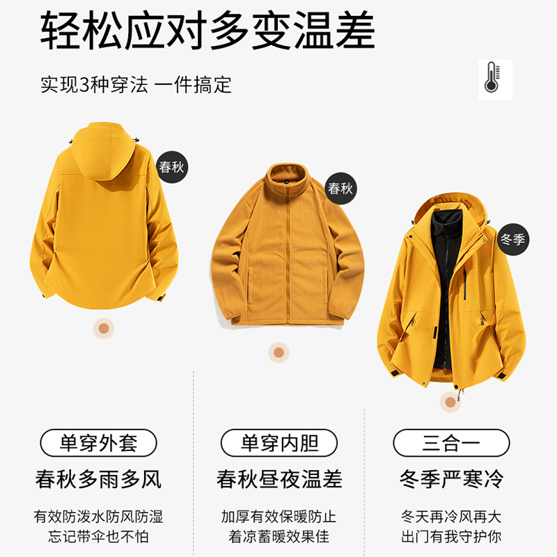 稻草人冲锋衣女士2025新款 户外防风防水三合一可拆卸外套 秋冬季