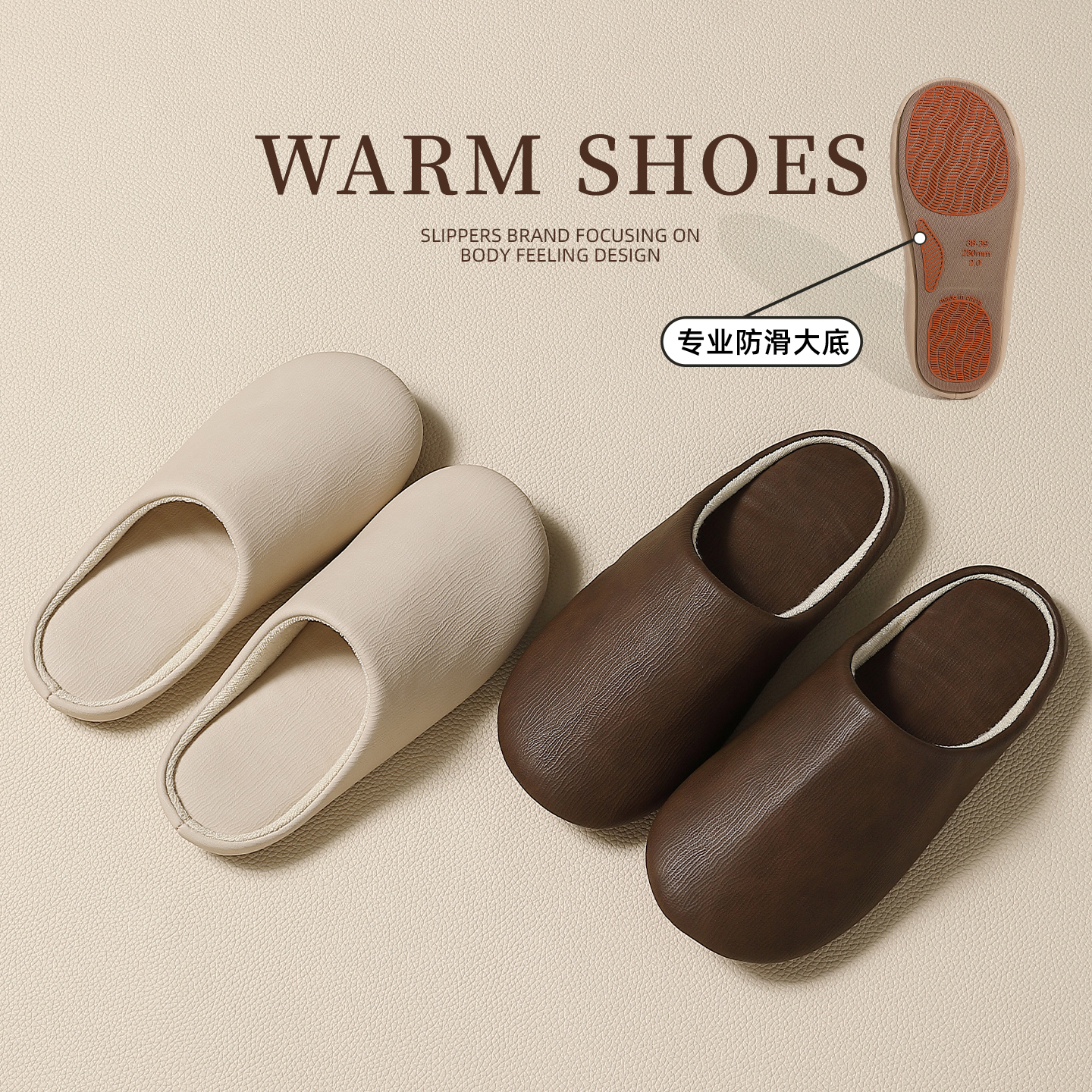 男 秋冬软底pu皮防水室内家居地板毛拖鞋 防滑静音棉拖鞋 女2025新款