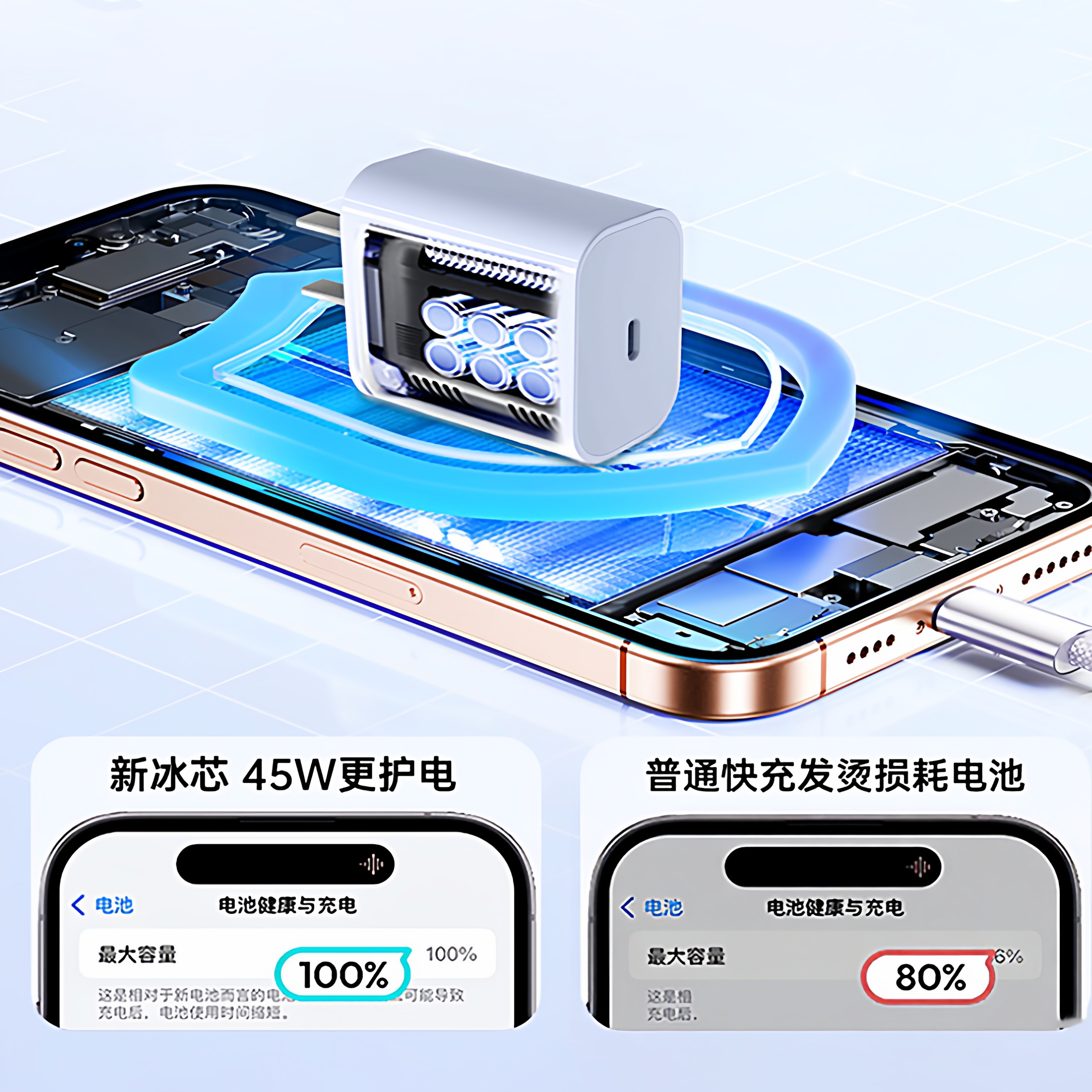 45W适用苹果17ProMax充电器Air手机40W快充头16 图拉斯小冰块Pro新款 15数据线typec一套 iPhone17新机首选