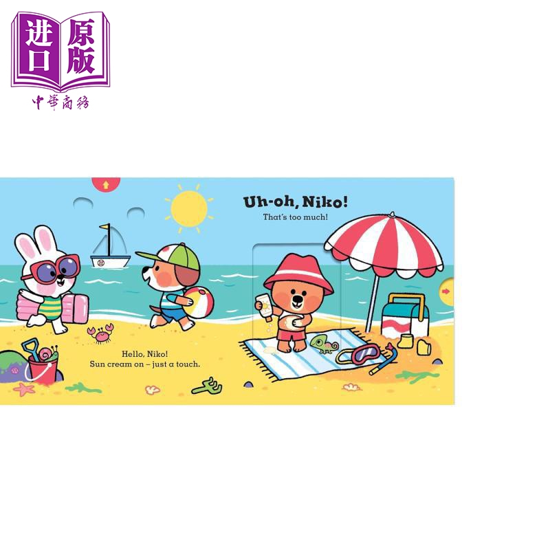 进口童书 The Niko 尼可熊 英文原版 滑块和翻页 色彩缤纷 有推拉式 亲子绘本 儿童互动纸板书 中商原版 Beach 海滩