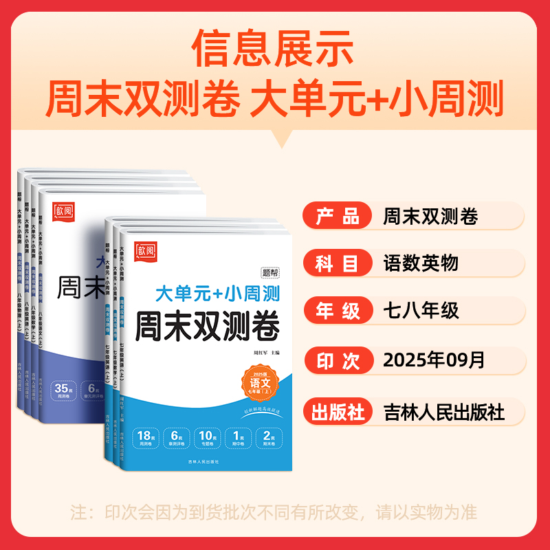 2025题帮周末双小测卷七八年级上册语文数学英语物理人教版 双测卷周周练测评卷期中期末检测大小卷 初中同步测试卷必刷题初一二单元