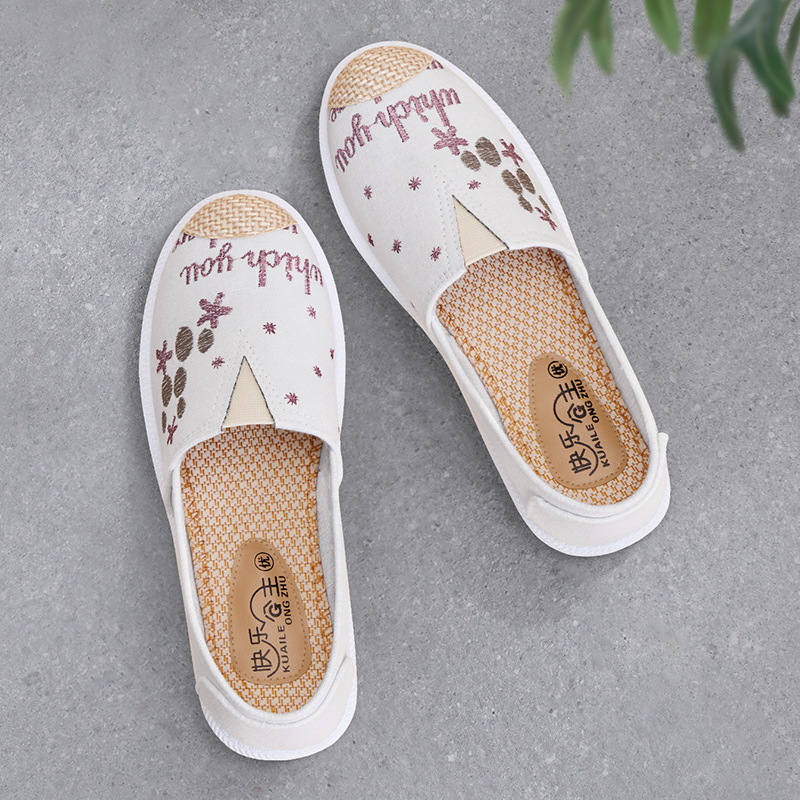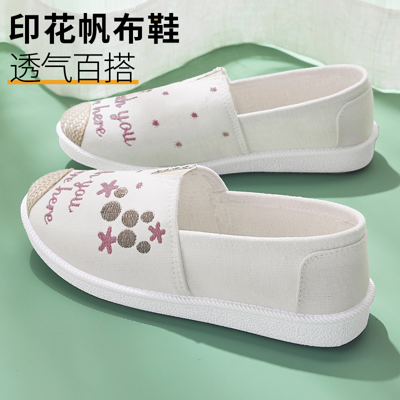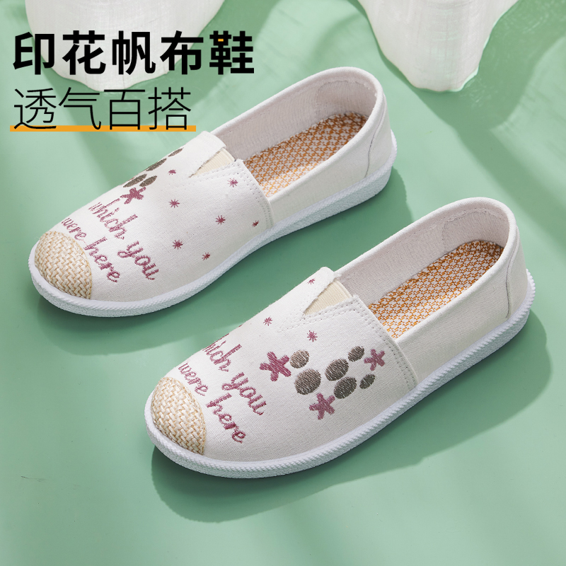 一脚蹬舒适开车懒人渔夫帆布鞋 透气休闲单鞋 女2025新款 老北京布鞋