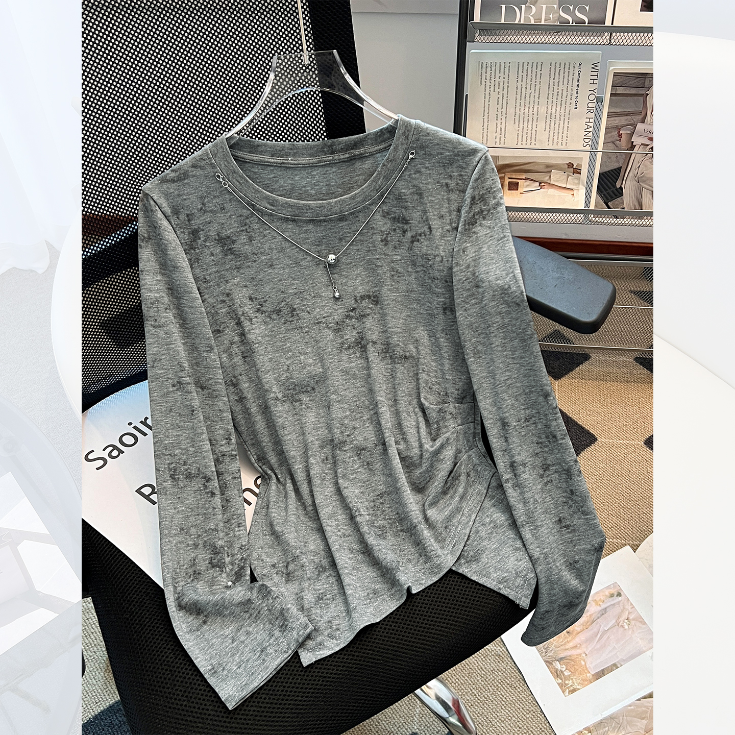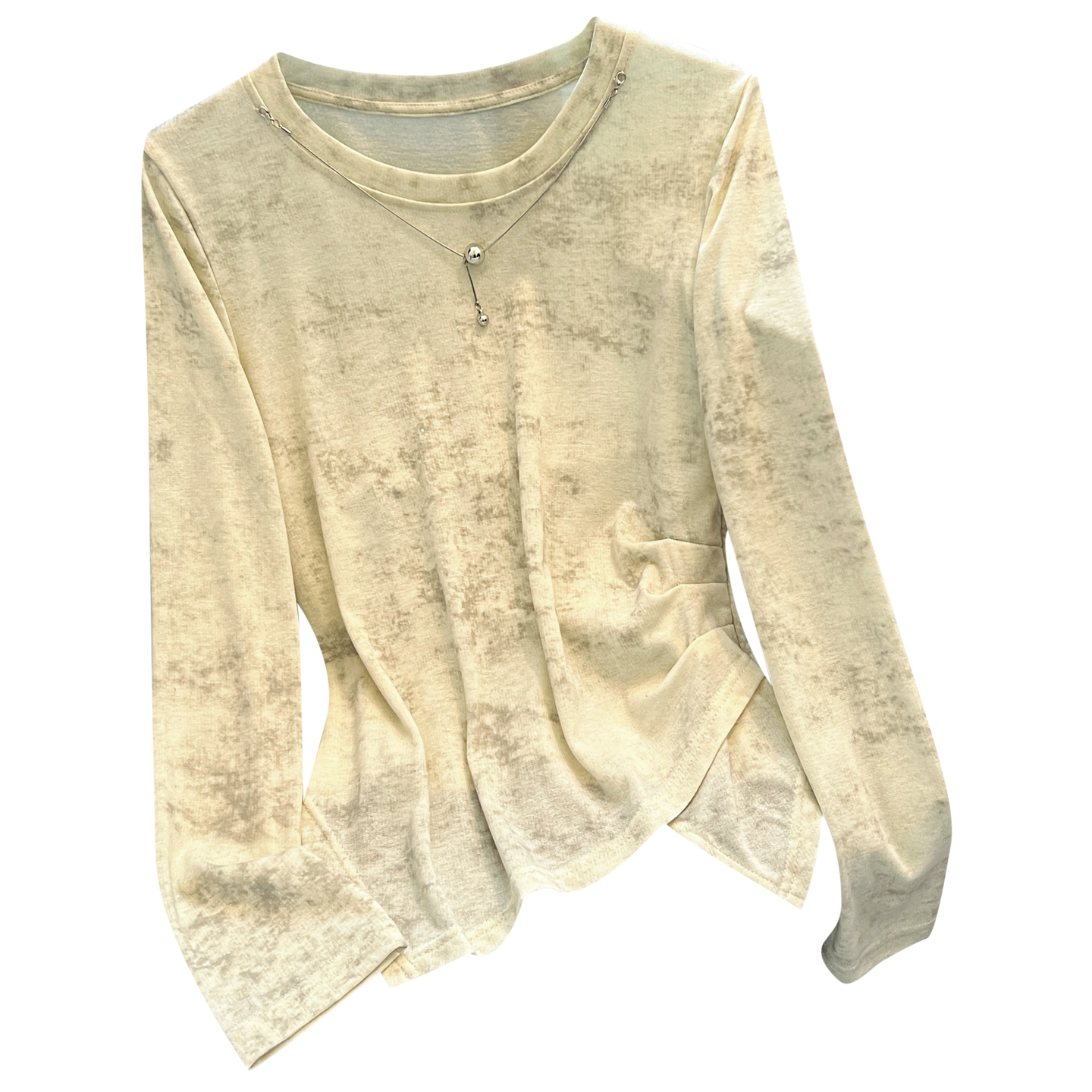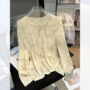上衣 T恤女2025春秋新不规则高腰短款 莱赛尔天丝薄款 圆领晕染长袖