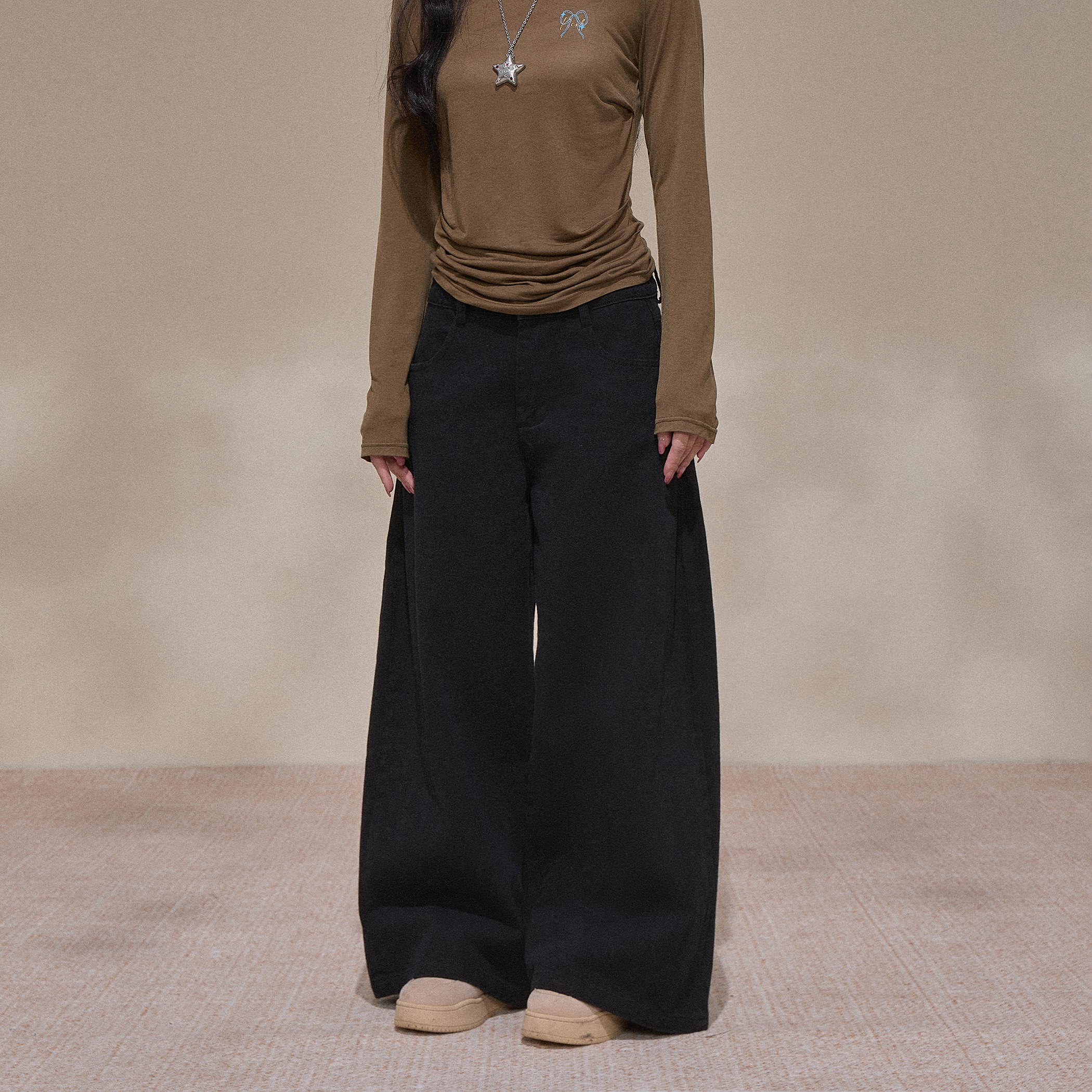 阔腿裤 王家有鱼2025秋季 女复古宽松小个子修身 显瘦直筒牛仔裤 新款