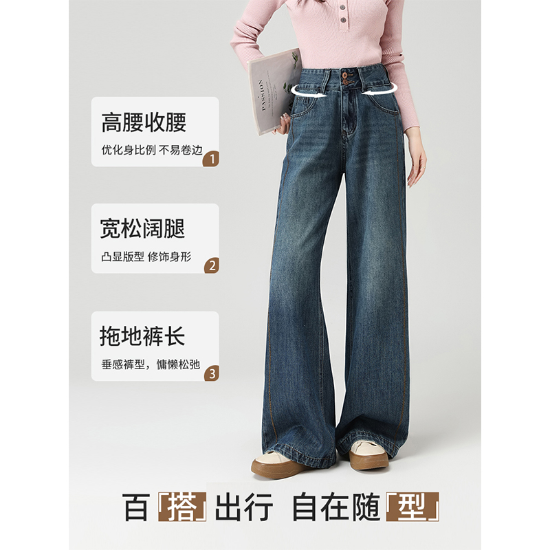 小个子拖地裤 牛仔裤 垂感宽松阔腿裤 2025年新款 女高腰显瘦直筒秋季
