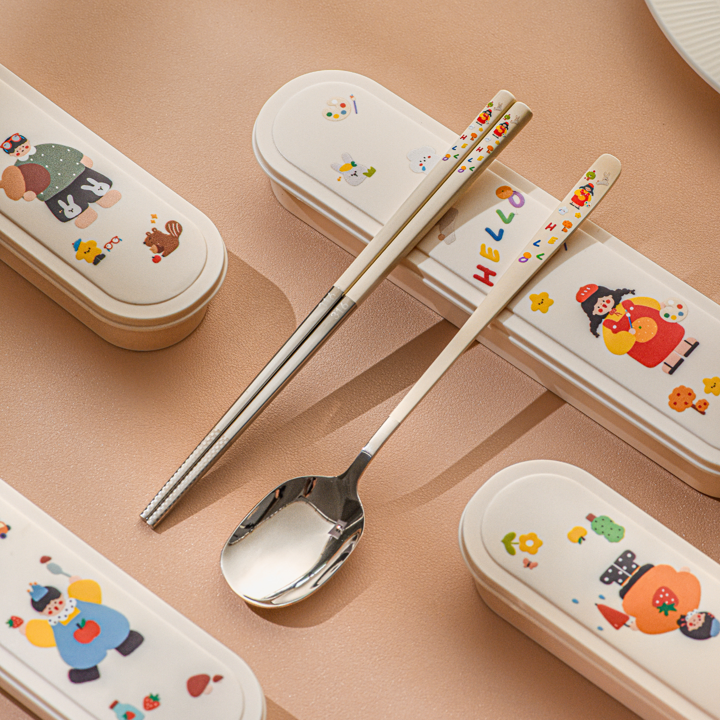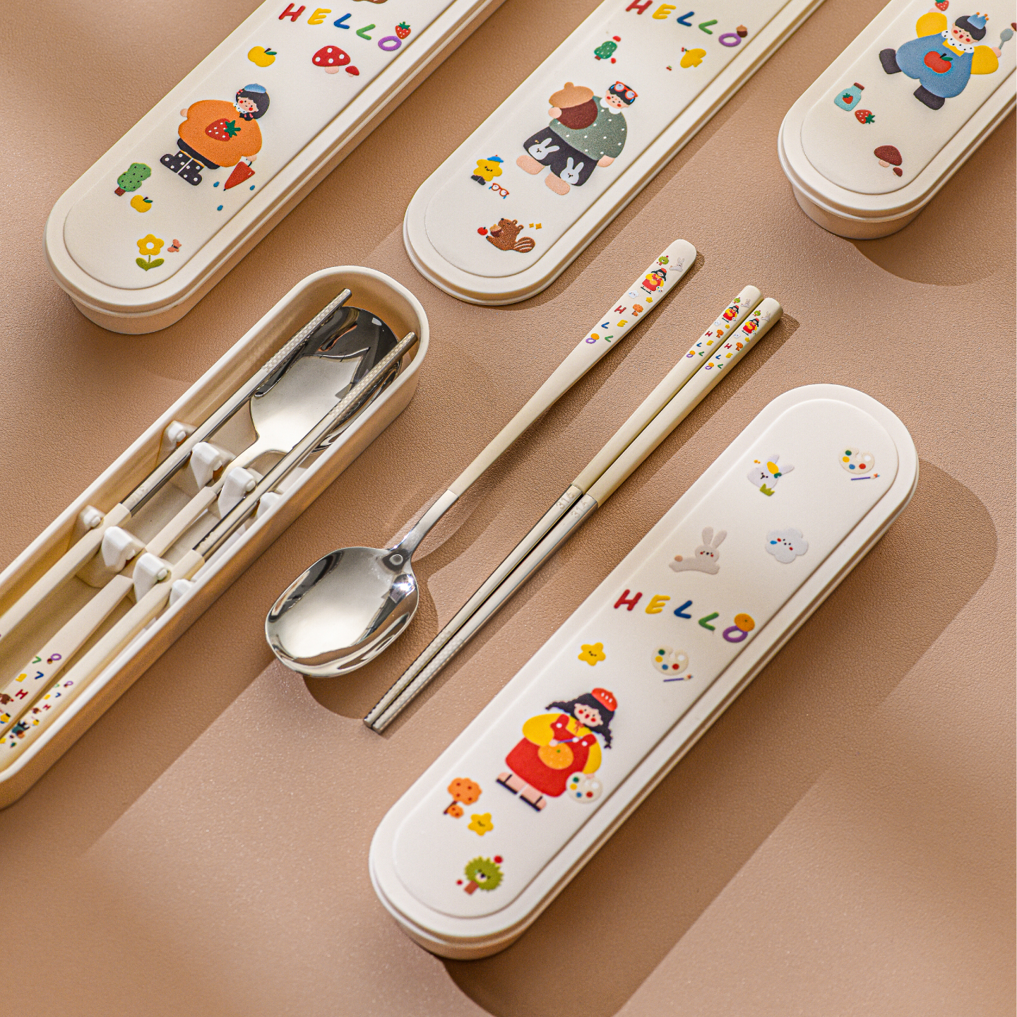 可爱316不锈钢筷子勺子套装 学生便携餐具上班族个人专用餐具套装
