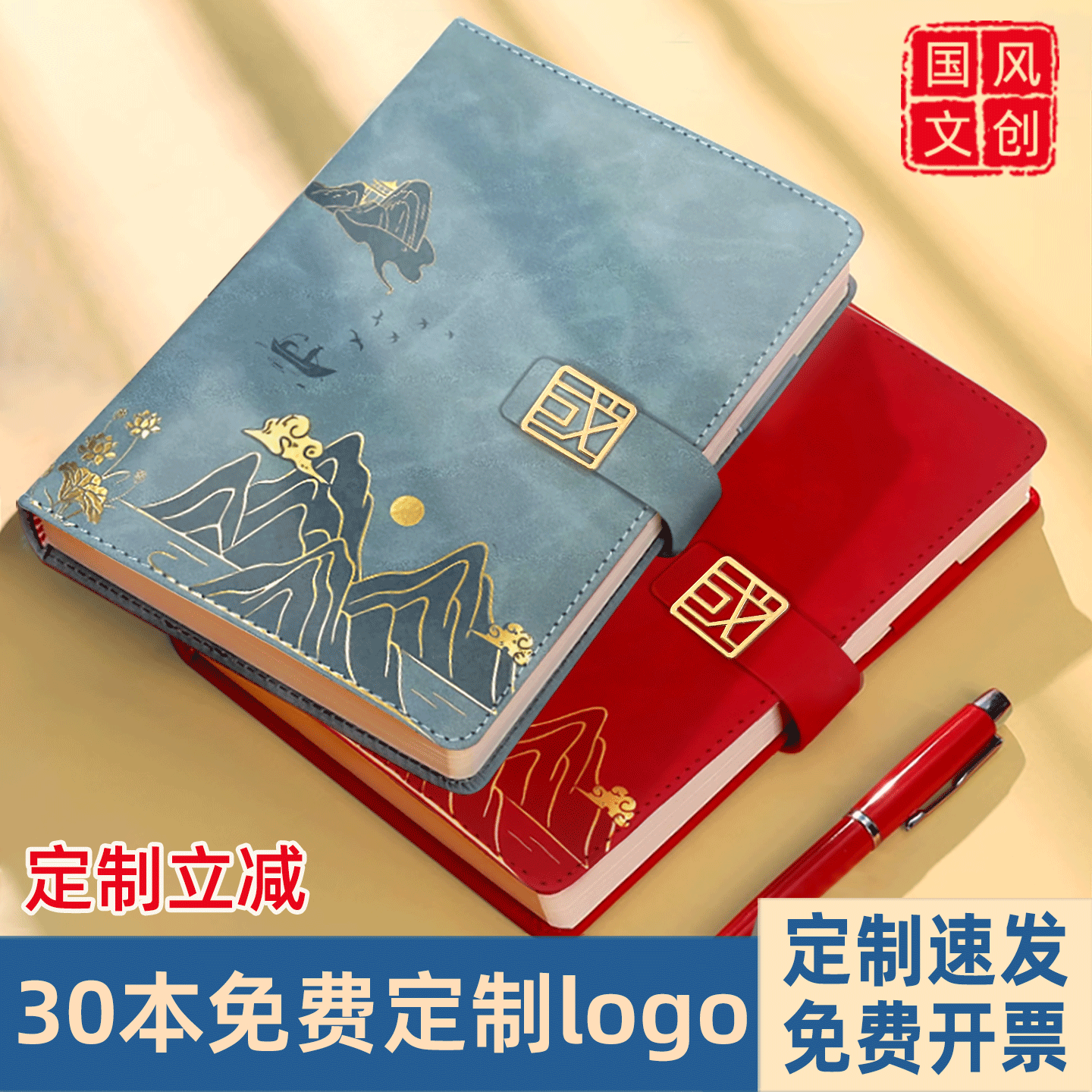 高颜值国潮笔记本定制可印logo企业商务礼品a5记事本加厚2025新款 简约搭扣b5日记本文创山水图案办公手账本子
