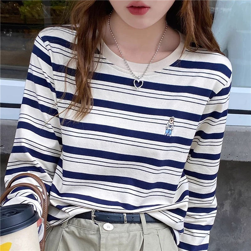 修身 撞色条纹t恤女长袖 秋冬设计感韩版 2025新款 上衣ins 内搭打底衫