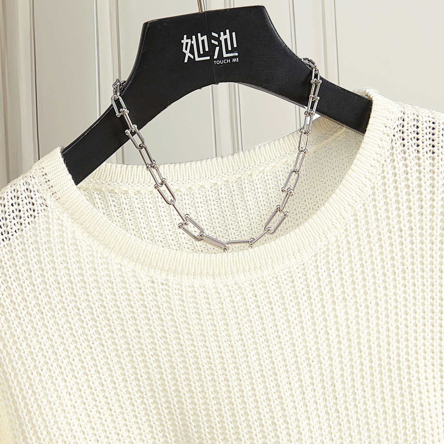 2025秋季 休闲慵懒风宽松款 新款 短款 套头上衣 女装 她池圆领针织衫