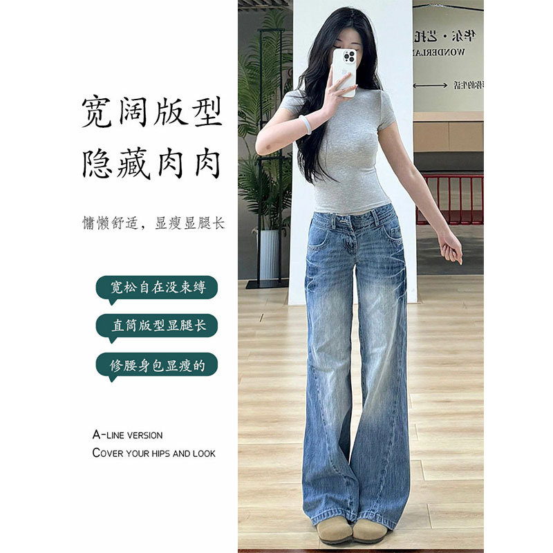 原色松弛高级女裤 2025新款 女秋解构分割拼接宽松阔腿裤 森马牛仔裤
