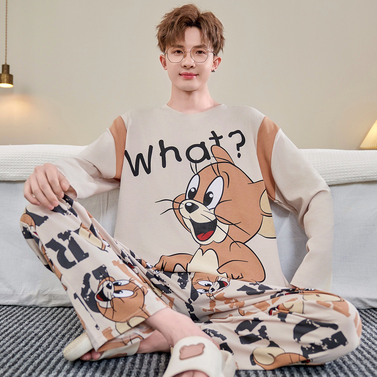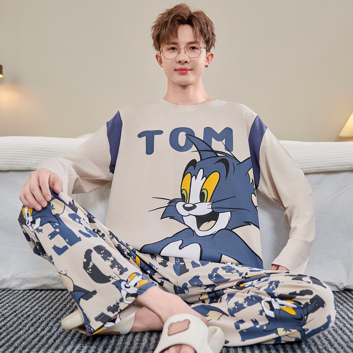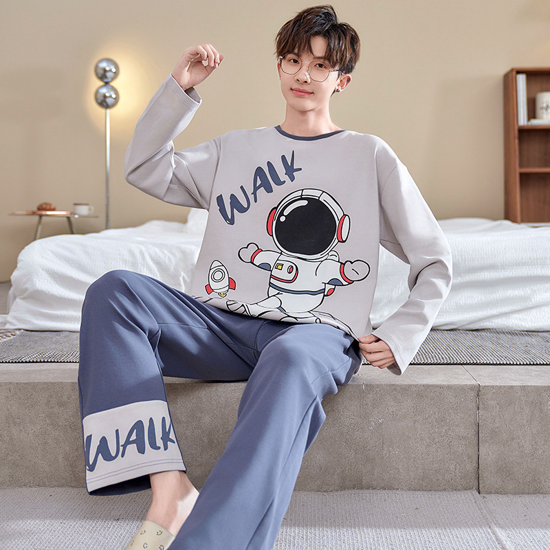 睡衣春秋款 家居服套装 纯棉长袖 2025年新款 青少年学生男孩大码 男士