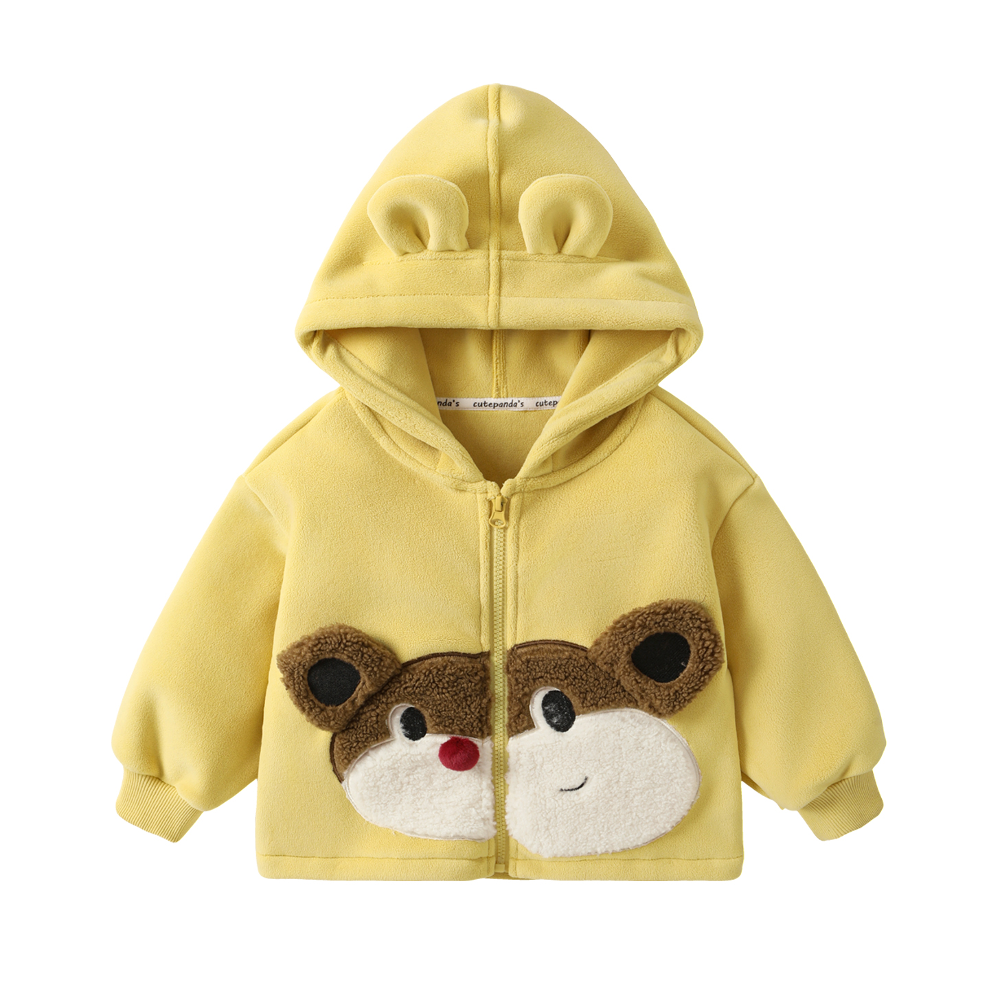 上衣潮 男童冬季 咔咔熊猫宝宝加绒保暖连帽衫 秋冬儿童加厚外套冬装