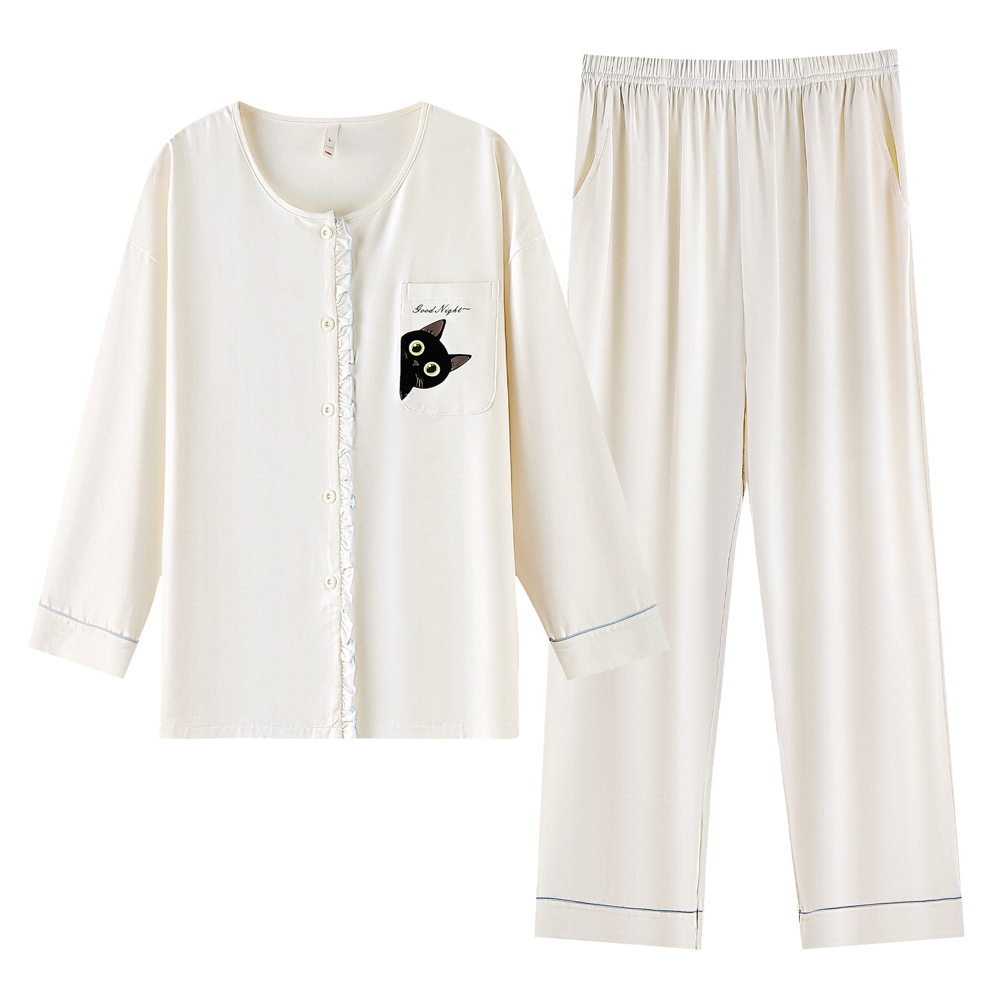 长袖 简约舒适家居服套装 长裤 夏季 可外穿 2025新款 纯棉睡衣女春秋季