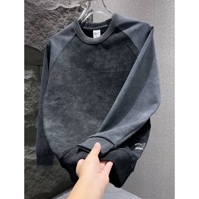 套头打底体恤衫 潮流长袖 设计感复古扎扎染高级感卫衣男装 2025新款