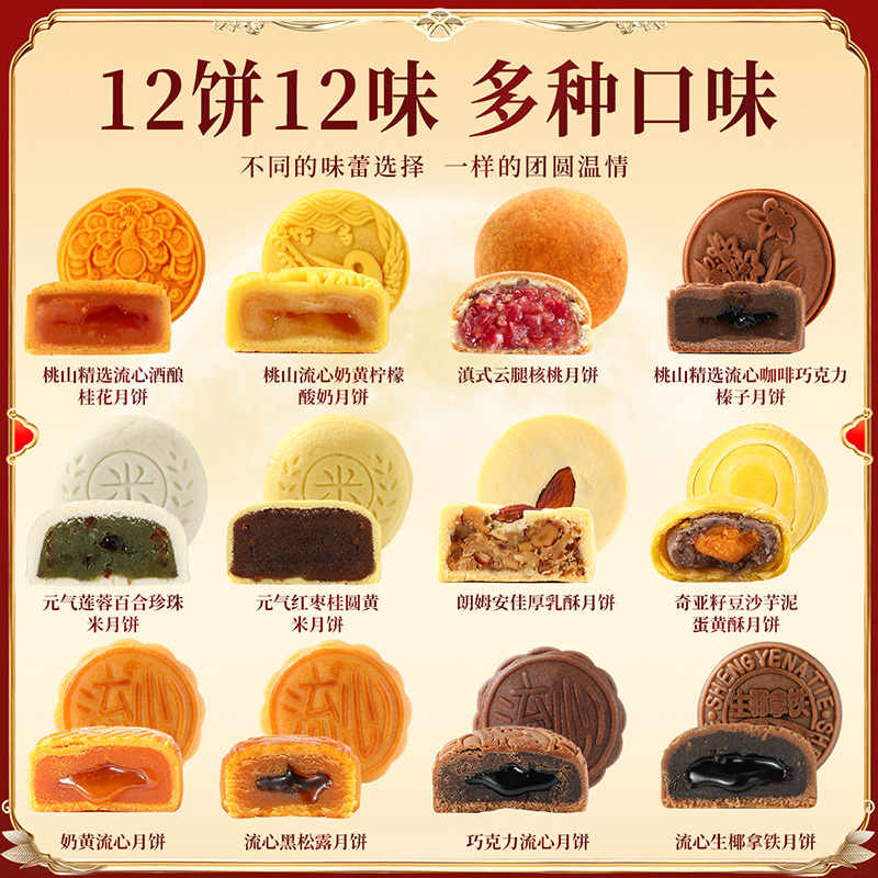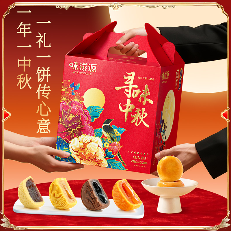 味滋源月饼礼盒老式 蛋黄莲蓉冰皮巧克力流心中秋送礼团购 五仁广式