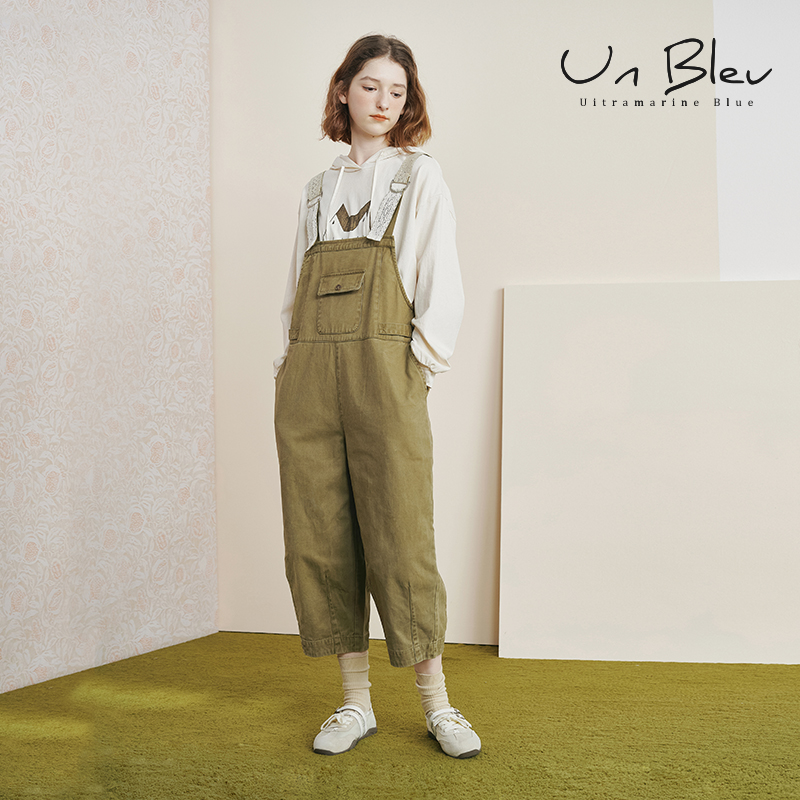 宽松休闲纯棉慵懒松弛感裤 unbleu工装 2025新款 女早秋女装 子 背带裤