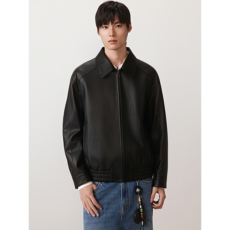 简约设计真皮牛皮革夹克翻领夹克外套皮衣男 GXG男装 25年秋季 新品