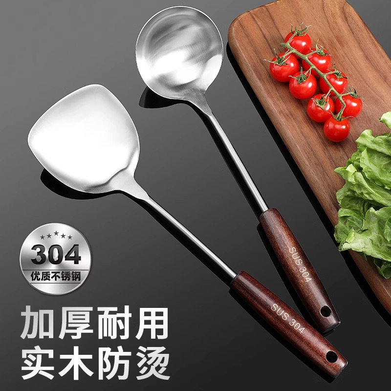 304不锈钢锅铲加厚炒菜铲子家用食品级厨具套装 铁锅专用汤勺漏勺