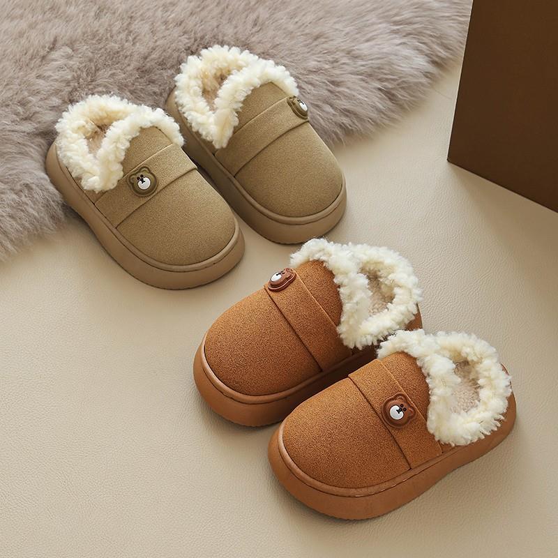 室内家居用小孩女宝宝包跟防滑软底毛毛绒棉鞋 儿童棉拖鞋 男秋冬季