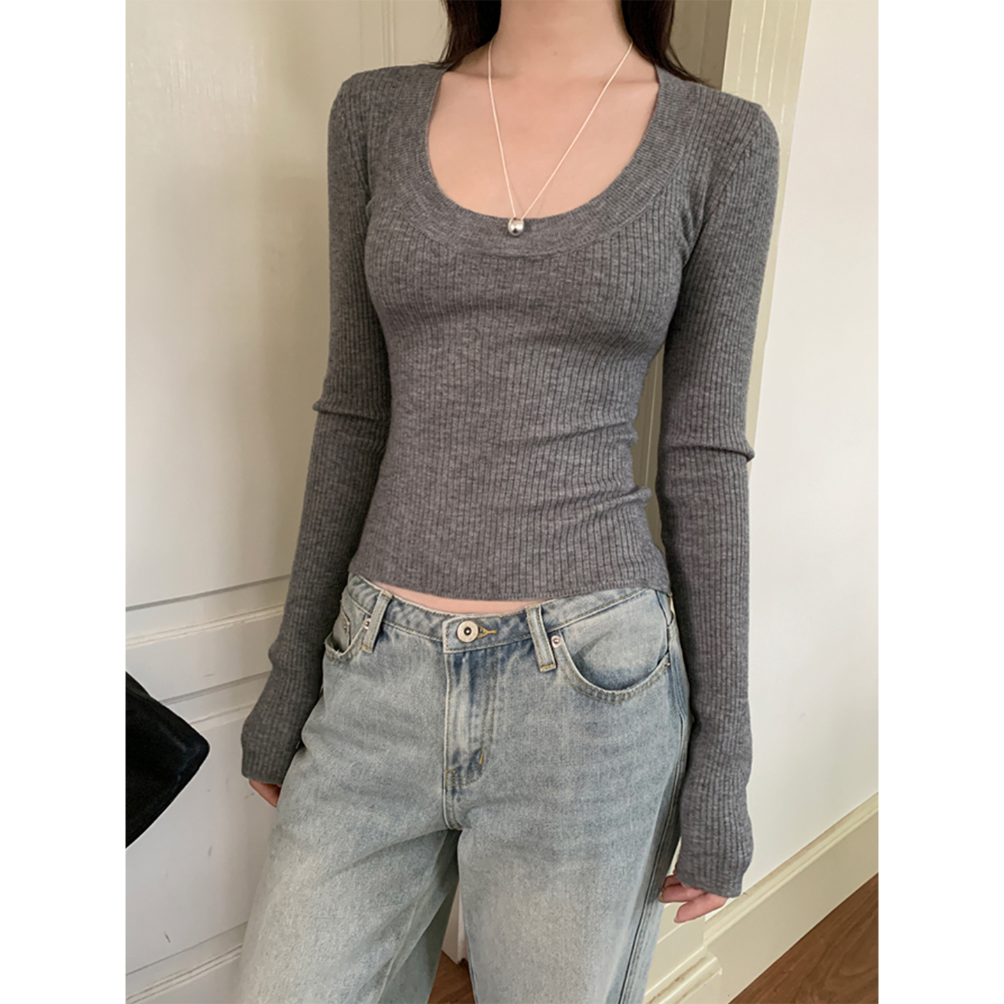 女长袖 高级感一线成衣圆领毛衣秋冬女内搭无缝修身 显瘦针织打底衫
