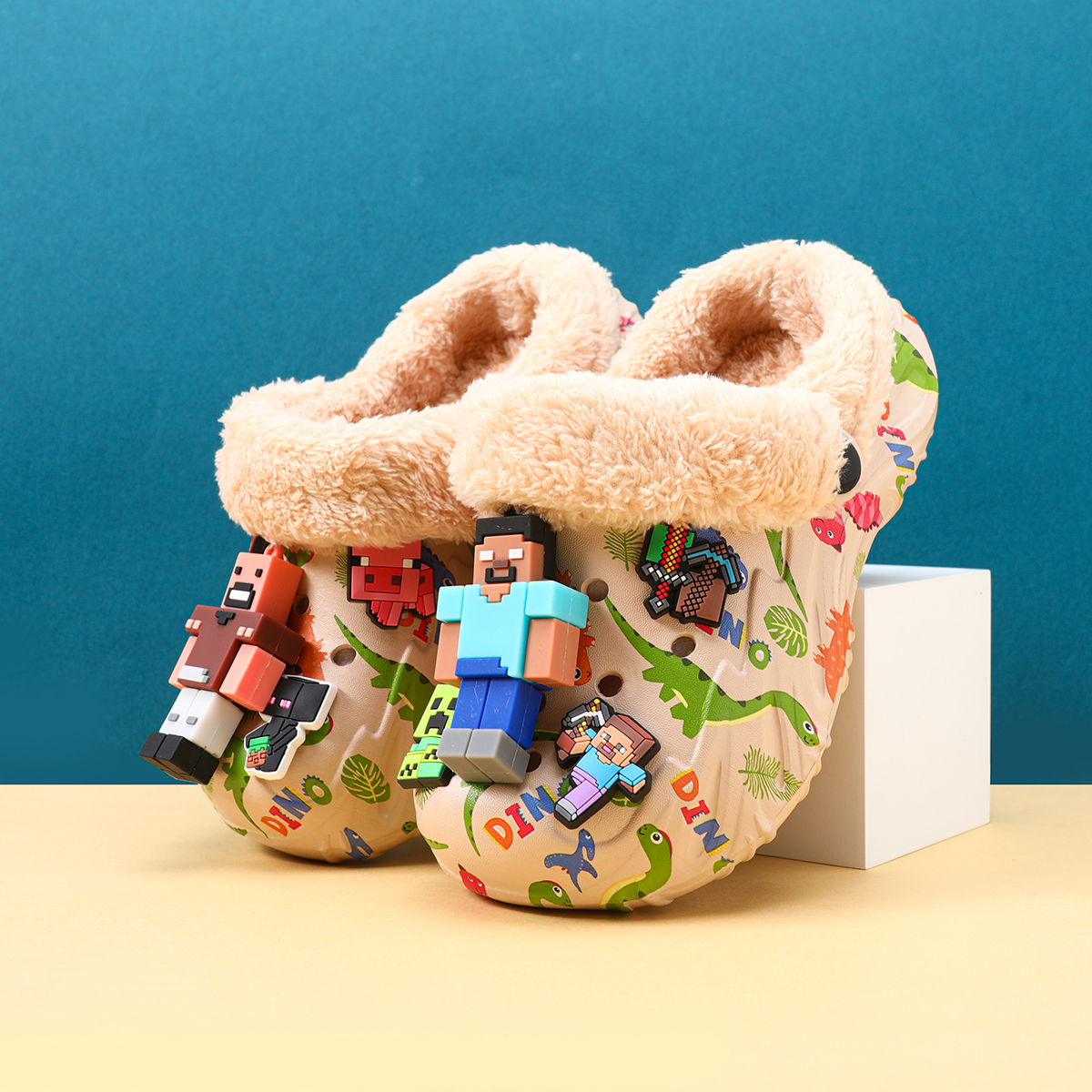 室内秋冬防滑软底加绒保暖加厚宝宝毛毛鞋 儿童棉拖鞋 男童2025新款