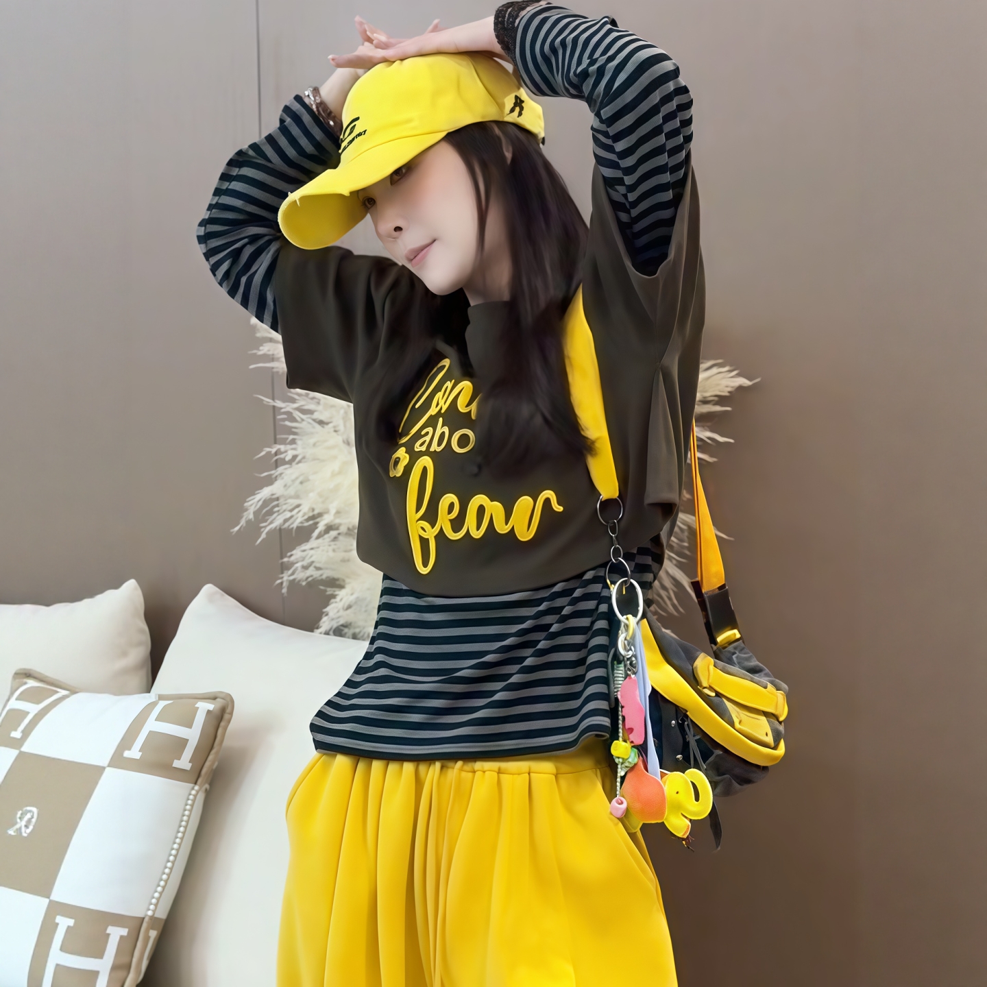 独特漂亮早秋上衣 今年流行爆款 撞色条纹假两件长袖 t恤女2025新款