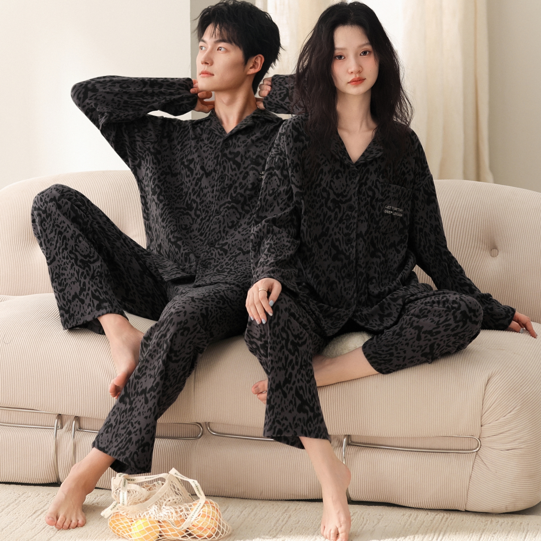 情侣睡衣可爱熊猫男女士家居服套装 贝妍春秋新款 加厚针织棉质长袖