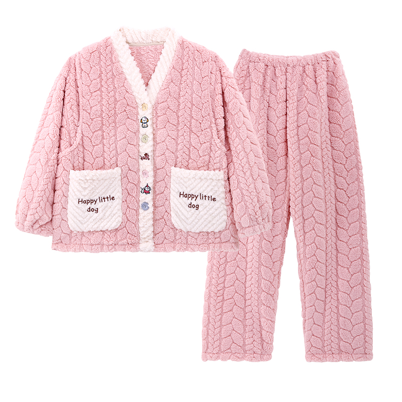 半边绒睡衣女秋冬保暖可爱卡通家居服套装 Gukoo 果壳新款