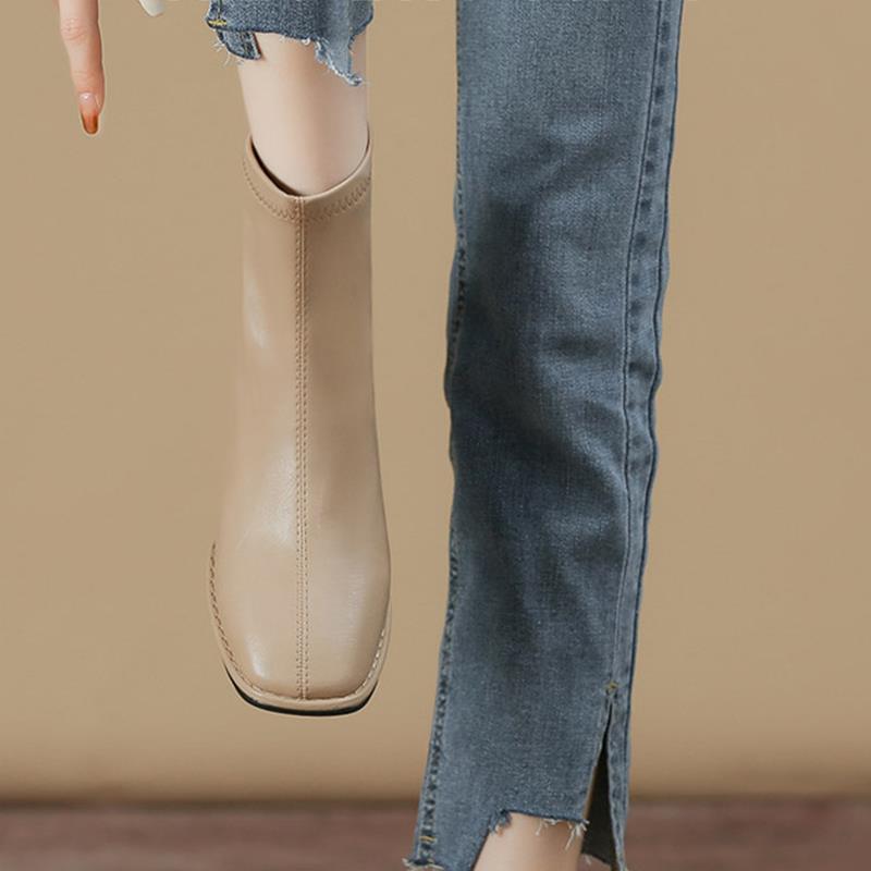 切西短靴女2025年秋冬新款 粗跟加绒弹瘦瘦靴中跟马丁靴子1018u
