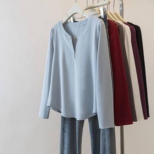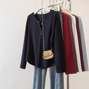 T恤胖mm遮肚显瘦独特内搭打底衫 大码 纯棉长袖 2025春秋季 上衣 女装