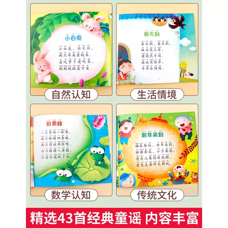 儿歌三百首 注音版 幼儿园书籍0 6岁宝宝歌谣书口才训练语言启蒙绘本一年级课外阅读书籍带拼音 三字儿歌 童谣儿歌早教书籍